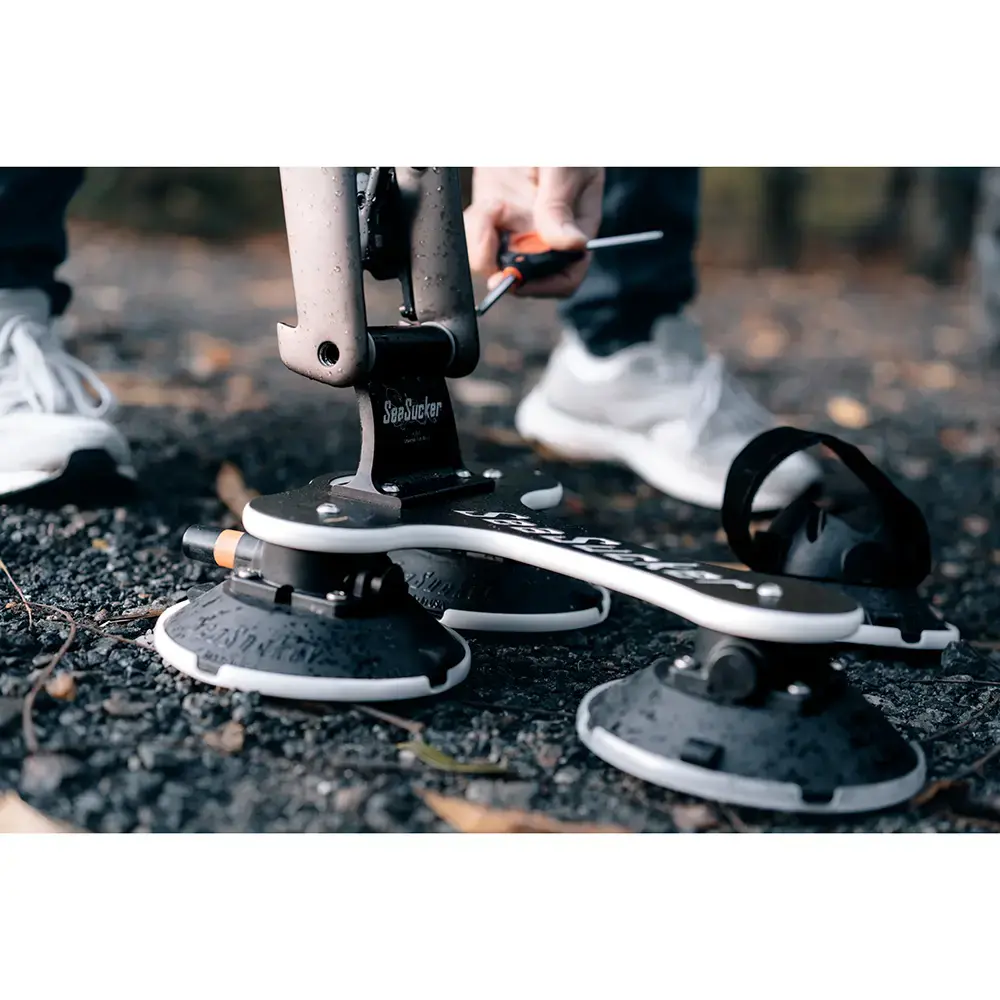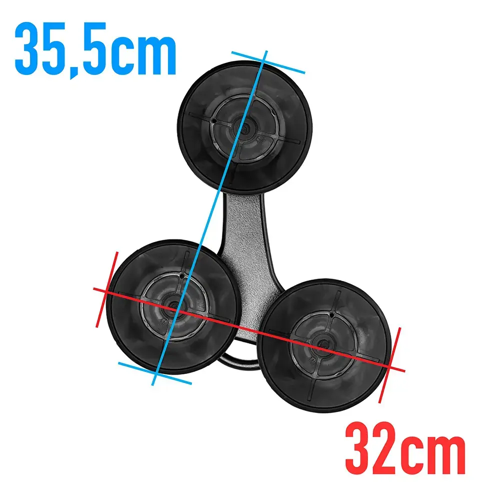 - Voorzien van drie zeer sterke, grote zuignappen (150mm, 95 kilo trekkracht per stuk)