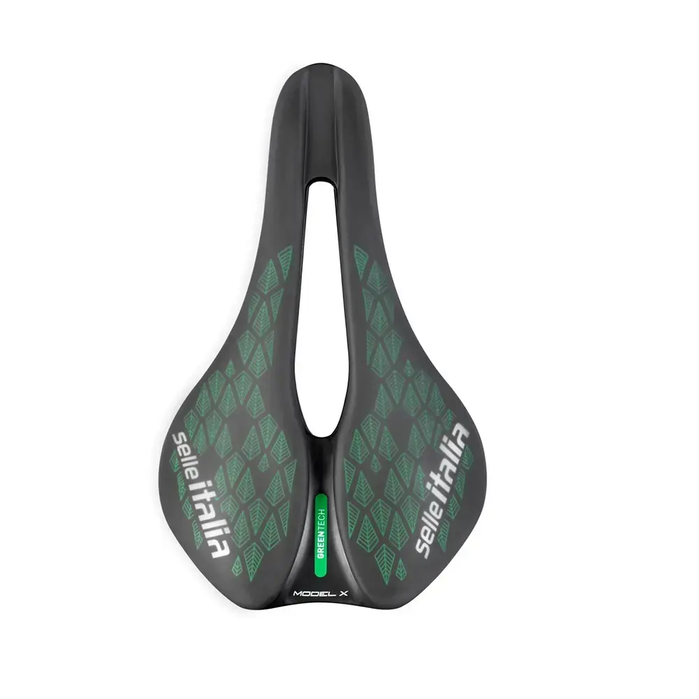 Selle Italia gaat voor groen! Bijvoorbeeld met dit Model X Green Superflow zadel. Dit zadel is het eerste resultaat van het nieuwe milieuvriendelijke productieproces Green-Tech, wat volledig ontwikkeld is in Italië. Het zadel is het resultaat van een productieproces van duurzame producten met een lage milieu-impact en die snel en tegen concurrerende kosten geproduceerd kunnen worden. Er wordt hierbij geen gebruik gemaakt van stoffen die bekend staan om hun hoge milieu-impact, zoals polyurethaan. Dit innovatieve zadel bestaat uit drie componenten die mechanisch en zonder het gebruik van verontreinigende hechtmiddelen gemonteerd zijn.