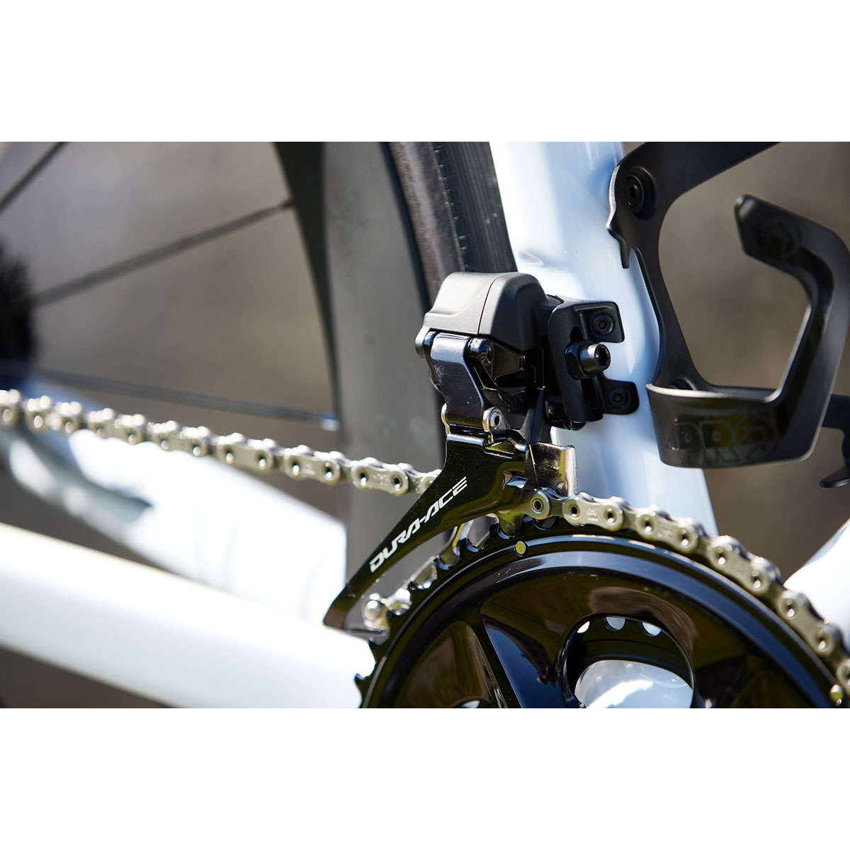 De Shimano Dura Ace R9250 Di2 voorderailleur is compleet vernieuwd en werkt sneller dan ooit! Het schakelsysteem zelf is een stuk kleiner dan de voorganger, maar schakelt toch veel sneller. Zelfs als je druk zet, heb je de ketting meteen op het andere blad liggen.