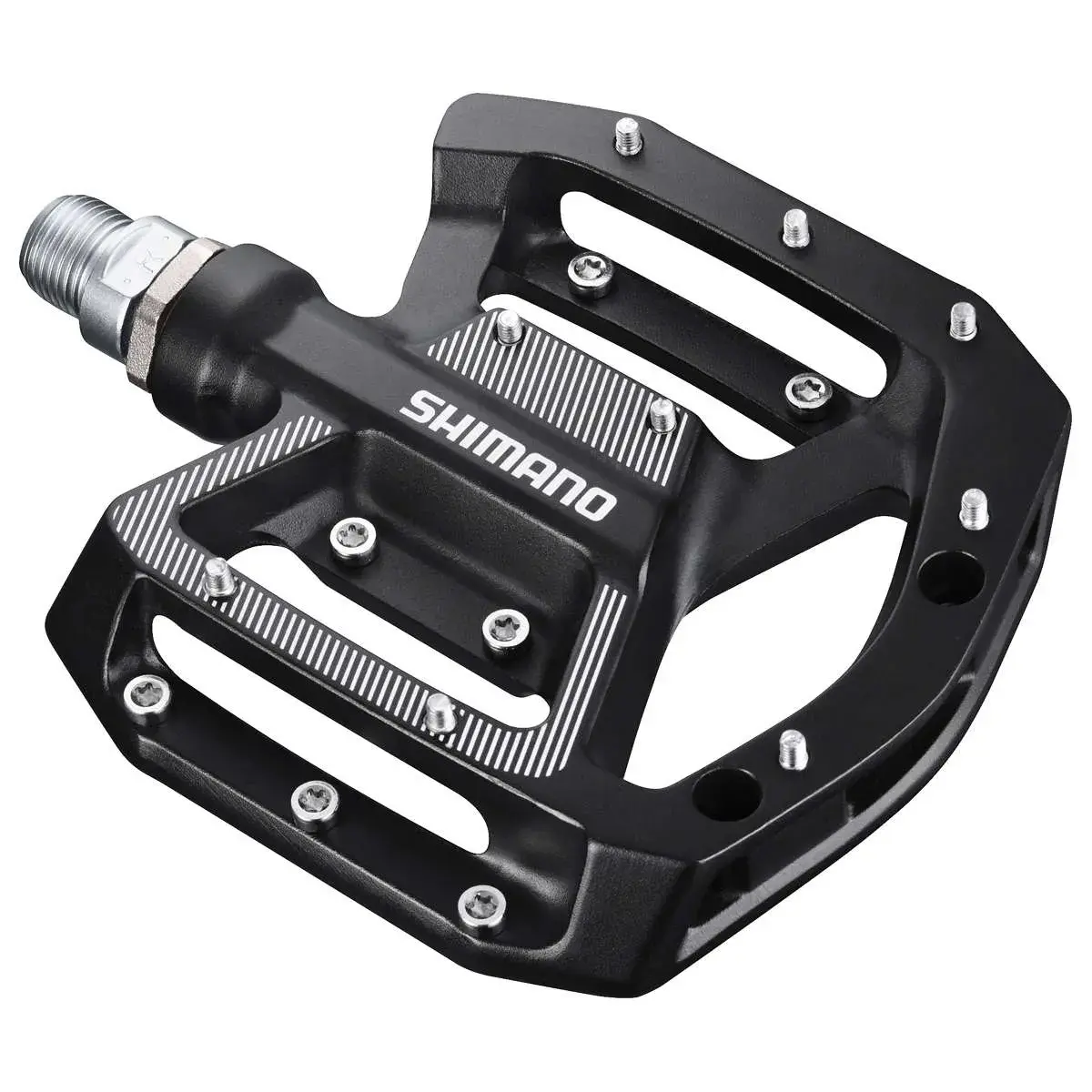 De Shimano GR500I MTB pedalen zijn uitstekende pedalen die voor ieder type renner geschikt zijn. Wat direct opvalt is het platte design met 18 in hoogte verstelbare pinnen. Door deze hoogte aan te passen kan je jouw pedalen afstellen op jouw rijstijl, zodat je altijd blijft genieten van ultiem comfort. De afgedichte lagers maakt onderhoud vrijwel overbodig, zodat je super lang kan genieten van de stevigheid en betrouwbaarheid van de ChroMo stalen as en de aluminium body.