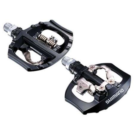 De Shimano PD-A530 SPD Pedalen Zwart zijn super functionele fietspedalen voor iedere sportieve fietser. Het pedaal biedt aan de ene zijde een stabiel platform waarmee je met de gewone schoen goede grip hebt. De andere zijde heeft het SPD kliksysteem, waardoor je met je wielerschoen kunt in klikken.