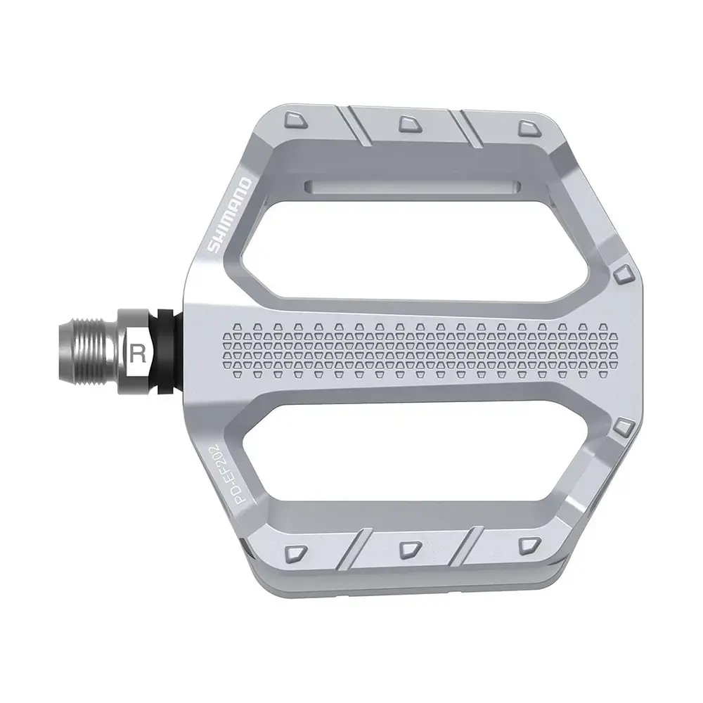 De platte PD-EF202 pedalen van Shimano met een breed aluminium platform en een textuurvlak bieden een stabiele trapervaring voor een alledaagse fietsrit. Deze stevige pedalen zijn bedoeld voor gewone schoenen en zijn ideaal voor sportieve ritten en forenzen. Deze pedalen zijn tevens geschikt voor e-Bikes en speed pedelecs. Voor het gebruik met gladde(re) schoenzolen zijn de PD-EF205 pedalen aan te raden.