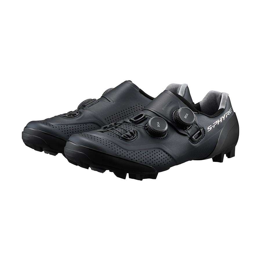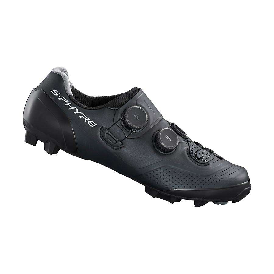 De Shimano S-PHYRE XC902 Mountainbikeschoenen zijn geschikt voor MTB en Cyclocross gebruik. Deze hoogwaardige mountainbikeschoenen zijn zeer licht van gewicht en de rubberen buitenzool met technisch patroon zorgt voor optimale grip. Dankzij de verstelbare metalen spikes kan je kiezen voor ultralichte prestaties of juist voor ultieme tractie. De dubbele BOA LI2 sluiting zorgt voor een optimale pasvorm. Het comfortabele bovenwerk bevat functiespecifieke zones en wetenschappelijk bewezen materialen maximaliseren de pasvorm en trapprestaties. De speciale tussenzool helpt de voet te stabiliseren en zorgt voor een super goede krachtoverdracht en efficiëntie.