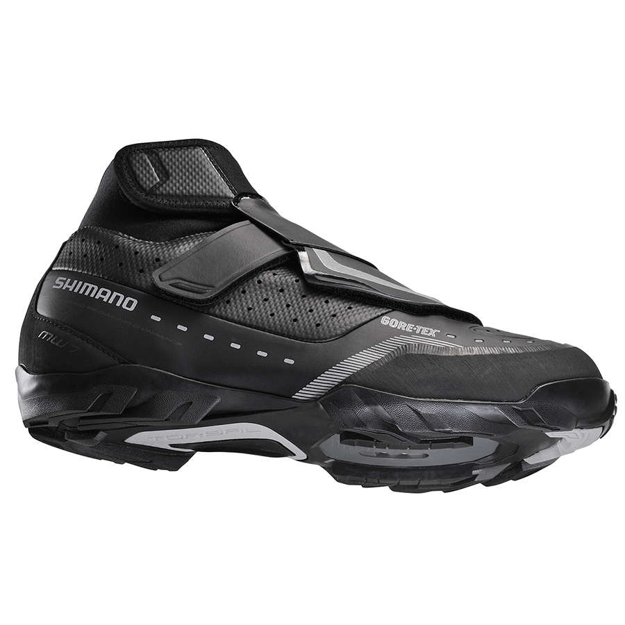 De SH-MW700 Mountainbikeschoenen van Shimano zijn ideaal voor koude, natte omstandigheden. Deze schoenen sluiten erg mooi om je voeten en vooral de enkels aan, dit in combinatie met het Gore-Tex membraan zorgt ervoor dat je voeten niet nat zullen worden. Deze schoenen hebben een goed ademend vermogen waardoor je voeten niet te warm worden tijdens het fietsen. De zool is relatief stijf waardoor je je kracht goed over kan brengen op je pedalen. Ook zit er een grof profiel onder de zool waardoor je prima grip hebt op een zachte ondergrond.