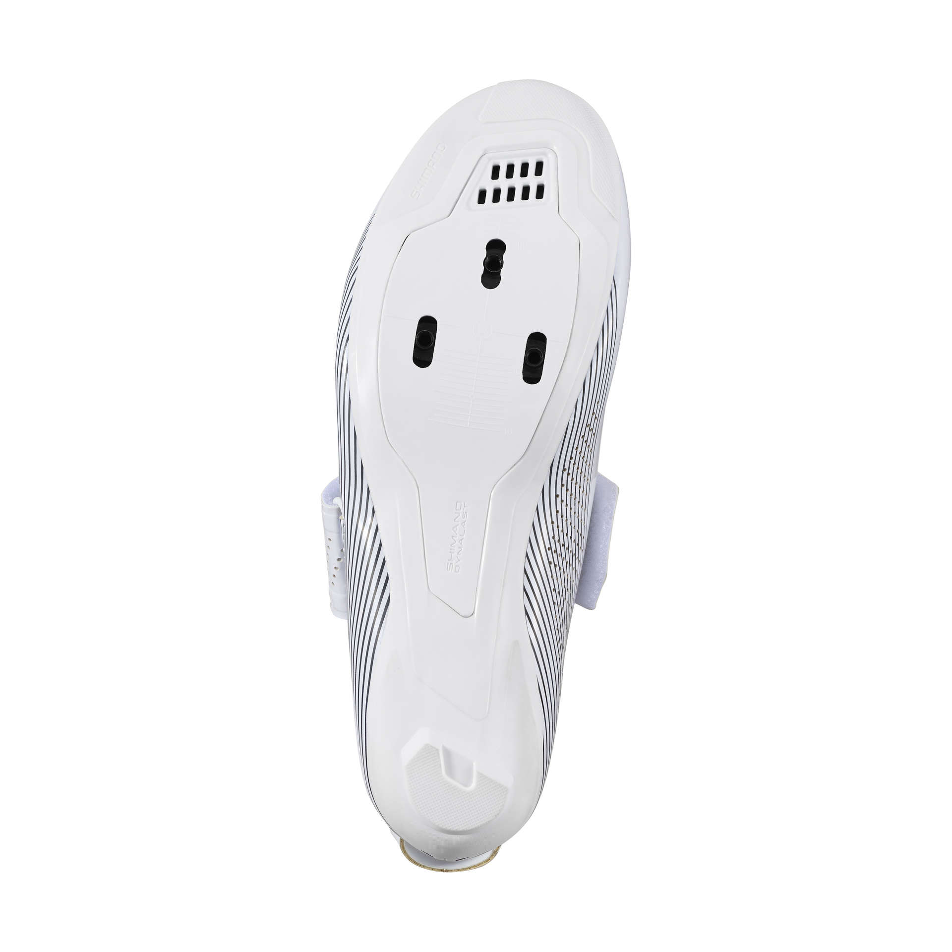 De Shimano TR501 Triathlonschoenen zijn gemaakt om snel aan- en uit te kunnen trekken in de transitiezone. De tussenzool en het bovendeel zijn naadloos aan elkaar vastgezet voor een betere passing, meer stabiliteit en een lager gewicht. De tussenzool is dunner, waardoor de stack height minder hoog is. Dit zorgt voor directer contact met de pedalen en een betere krachtsoverbrenging. De zool zelf is van nylon dat is verstevigd met glasvezel. De T1 quick stap klittenband sluiting heeft een brede kraag en maakt snel aan- en uittrekken van de schoen mogelijk. Dit wordt versterkt door de grote lus op de hak van de schoen. Kortom, deze schoen is ideaal voor triathlons, waarin iedere seconde telt.