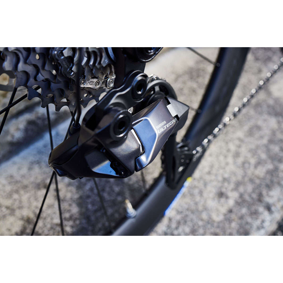 De Shimano Ultegra R8150 DI2 SS achterderailleur is slimmer dan ooit. Deze ene derailleur kan alle Shimano 12 speed race-cassettes aan, je hoeft niet te checken of je een lange of korte kooi nodig hebt. Daarnaast bevat de derailleur een oplaadpoort, beschikt over bluetooth en meer. Je hebt daardoor geen losse bluetooth-unit of junction box meer nodig. Je regelt alles direct op de derailleur zelf.