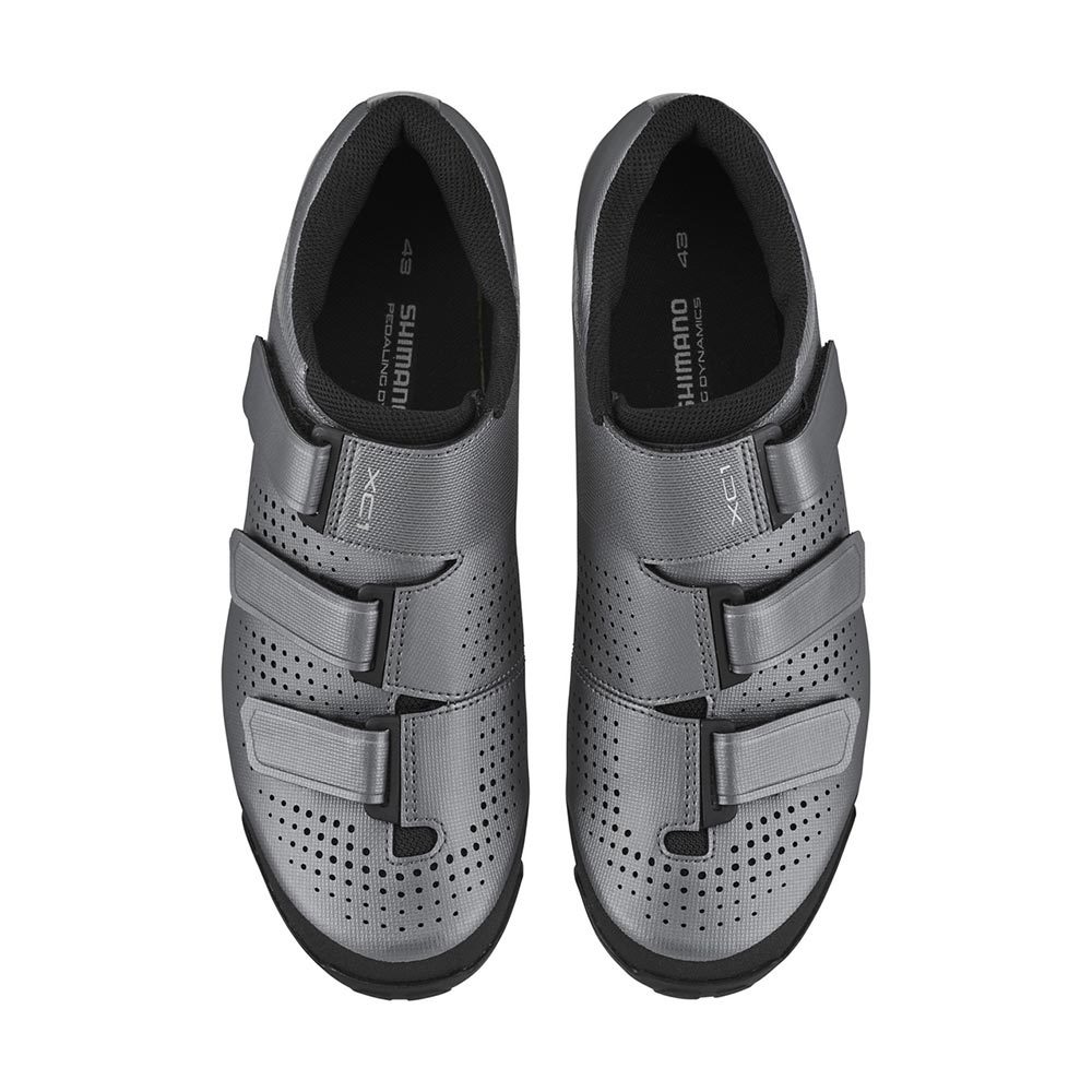 De Shimano XC100 Mountainbikeschoenen bieden kwaliteiten van duurdere schoenen terug naar deze voordelige variant. De drie klittenbandsluitingen verminderen de druk en spanning over de voet, maar bieden voldoende ondersteuning om kracht over te brengen op de pedalen. De bovenzijde van de schoen is van geperforeerd synthetisch leder wat zorgt voor een hoog ademend vermogen en een mooie pasvorm. De zool is van een lichtgewicht nylon dat is versterkt met glasvezel. De buitenzool met noppen zorgen voor extra stabiliteit en goede grip tijdens het lopen.