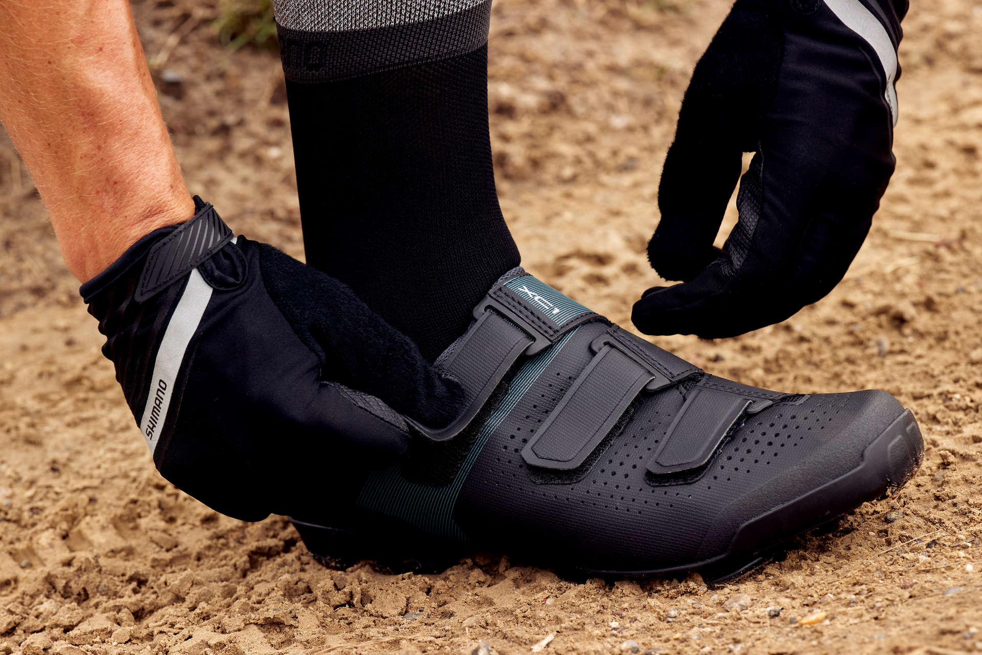 De Shimano XC100 Mountainbikeschoenen bieden kwaliteiten van duurdere schoenen terug naar deze voordelige variant. De drie klittenbandsluitingen verminderen de druk en spanning over de voet, maar bieden voldoende ondersteuning om kracht over te brengen op de pedalen. De bovenzijde van de schoen is van geperforeerd synthetisch leder wat zorgt voor een hoog ademend vermogen en een mooie pasvorm. De zool is van een lichtgewicht nylon dat is versterkt met glasvezel. De buitenzool met noppen zorgen voor extra stabiliteit en goede grip tijdens het lopen.
