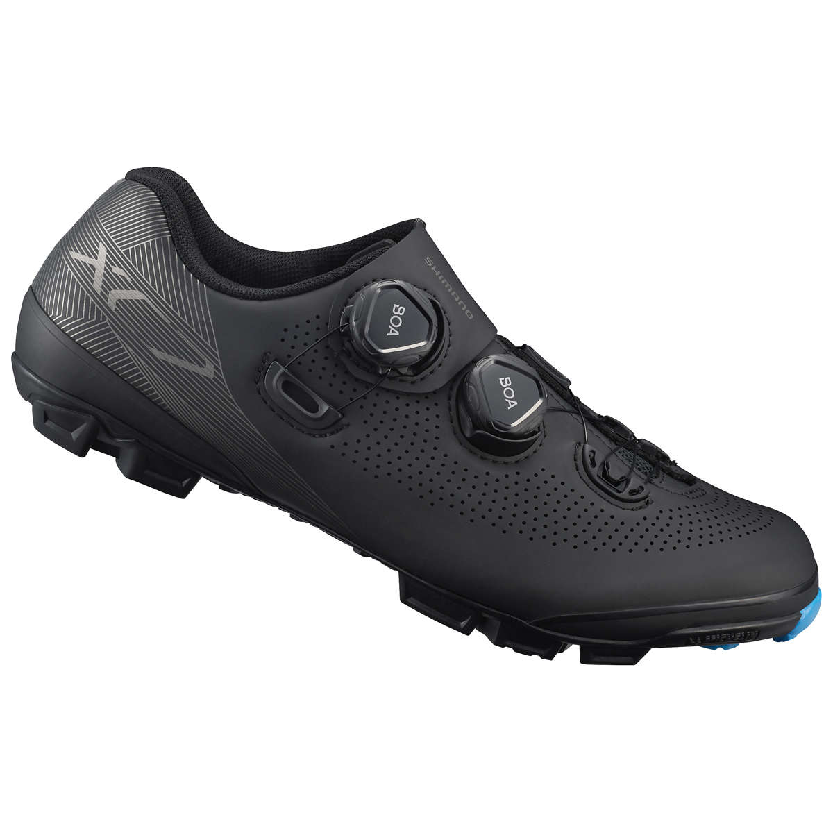 De Shimano XC701 mountainbikeschoen is de off-road wedstrijdschoen voor ultiem comfort en maximale prestaties. De XC7 is afgewerkt met soepel kunstleder om ventilatie en pasvorm te optimaliseren. De stijve en lichtgewicht carboncomposiet zool bevat een exclusief modder afvoerend loopvlakpatroon van Michelin voor optimale grip. Dankzij de stijve zool gaat er geen energie verloren tijdens de pedaalbeweging. Hierdoor trap je zeer efficiënt en gaat al je geleverde kracht direct naar de wielen. De schoen vormt zich perfect rond de voet met behulp van de speciale BOA L6 sluitingen. Deze zijn zeer precies af te stellen voor de perfecte pasvorm.