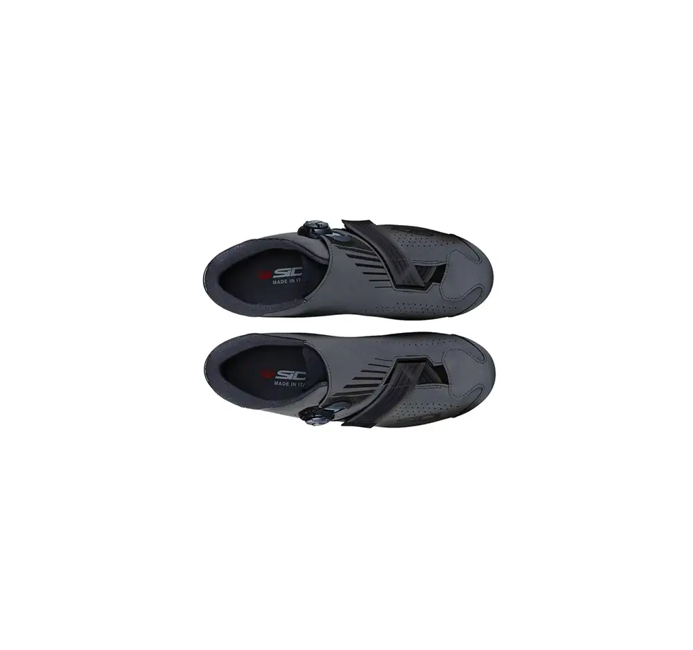 De Aertis MTB-schoen van Sidi maakt je rit comfortabeler en prettiger dankzij de ongeƫvenaarde stabiliteit die de schoen biedt. De snelheid op de pedalen verkrijg je onder andere door de MTB SR17 zool, die bestaat uit nylon met kunststof inserts voor maximale stabiliteit. Mocht je van de fiets moeten in modderige omstandigheden, dan geven de noppen voor de grip die je nodig hebt. De verstevigde hielcup helpt ook met het opbouwen van je snelheid. Wanneer je op de pedalen staat zorgen deze verstevigingen ervoor dat je niet uit de schoen wipt en dat je voet betrouwbaar stevig in de schoen zit. Het bovenwerk is gemaakt van slijtvast en duurzaam Politex materiaal: een mix van 3 fabricages (PVC, vilt en gebreide stof) dat enorm duurzaam is. Snel in- en uitstappen doe je door Tecno 3 sluitsysteem dat werkt met een enkele kabel, en een band klittenband. Daardoor krijgt je met een handbeweging de schoen open.