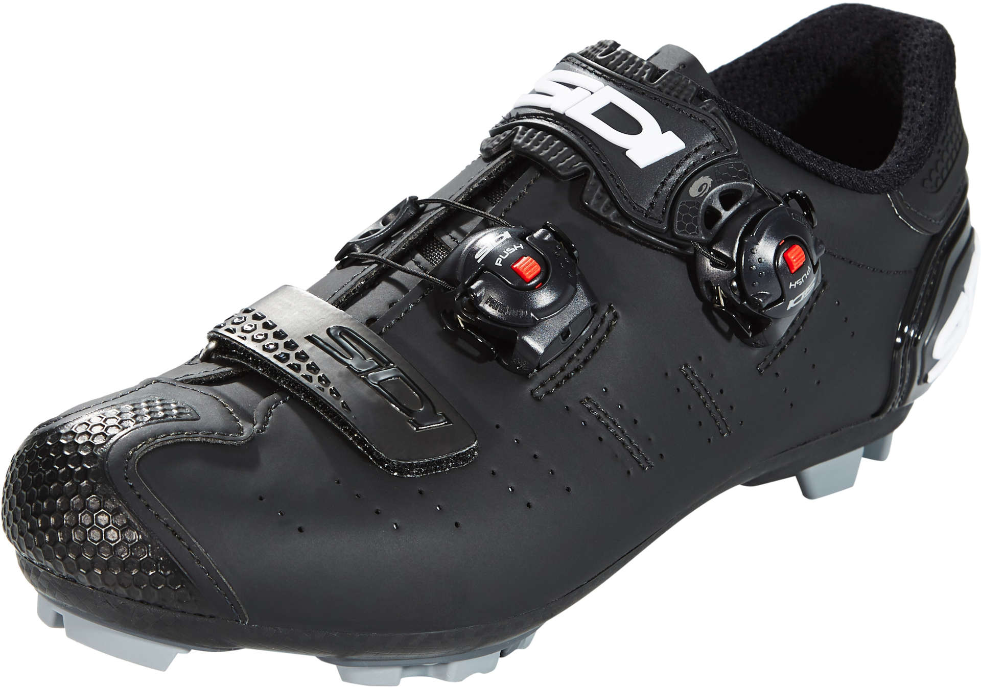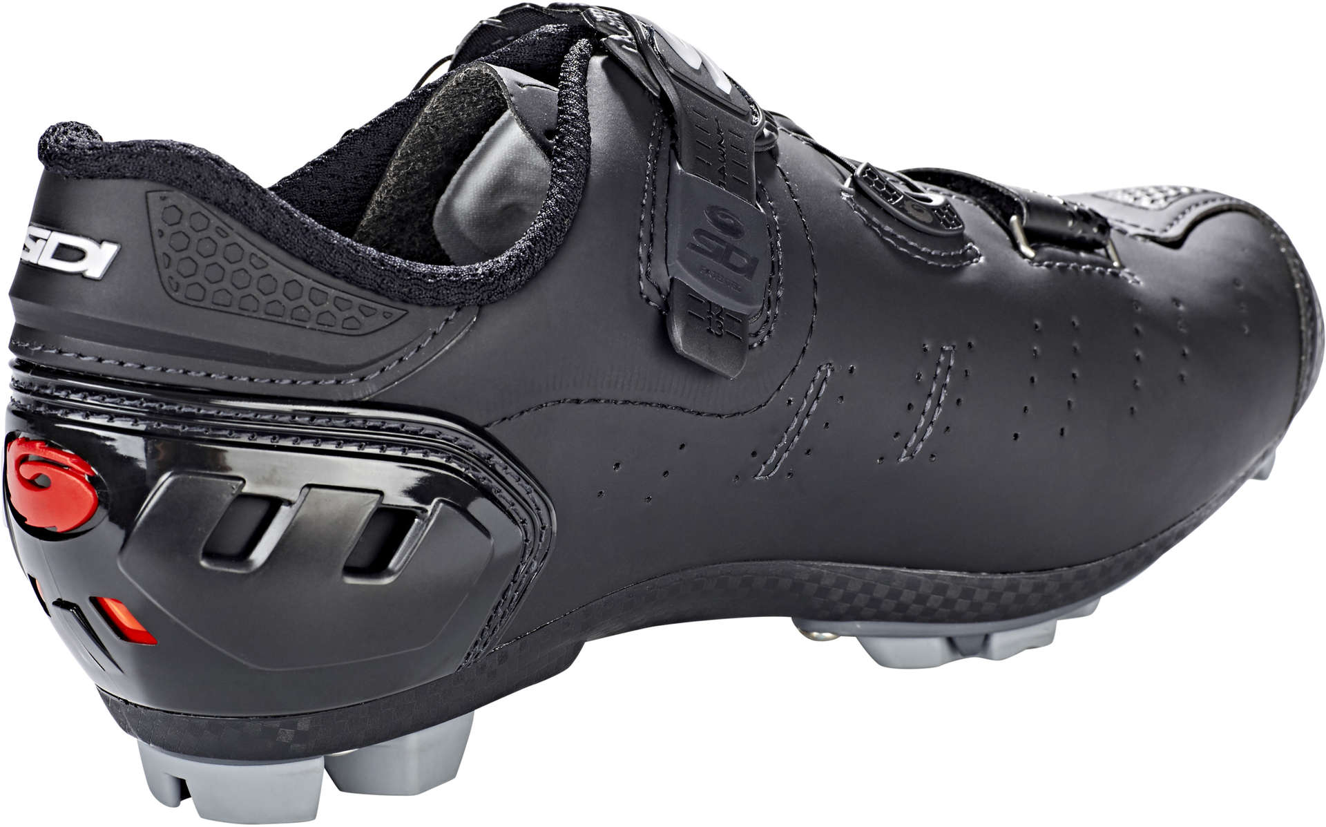 De Sidi Dragon 5 SRS is een absolute topschoen in het MTB-segment. De combinatie van het Soft Instep 4 systeem en de Tecno 3 sluitingen zorgen voor ultiem comfort en een gelijkmatige drukverdeling over je voet. De verstevigde hiel van de Sidi heel cup geeft extra stijfheid waardoor je nog meer kracht kwijt kunt op je pedalen. Bovendien zorgt de lichtgewicht SRS carbon composite zool voor nóg meer stijfheid. De extra Velcro-band sluit de schoen aan de voorkant af en sluit het geheel nog beter en veiliger om je voet. De Microfiber tech afwerking houdt vuil en water buiten de deur en heeft bovendien een goed ademend vermogen. Op die manier kun jij de beste prestaties leveren.