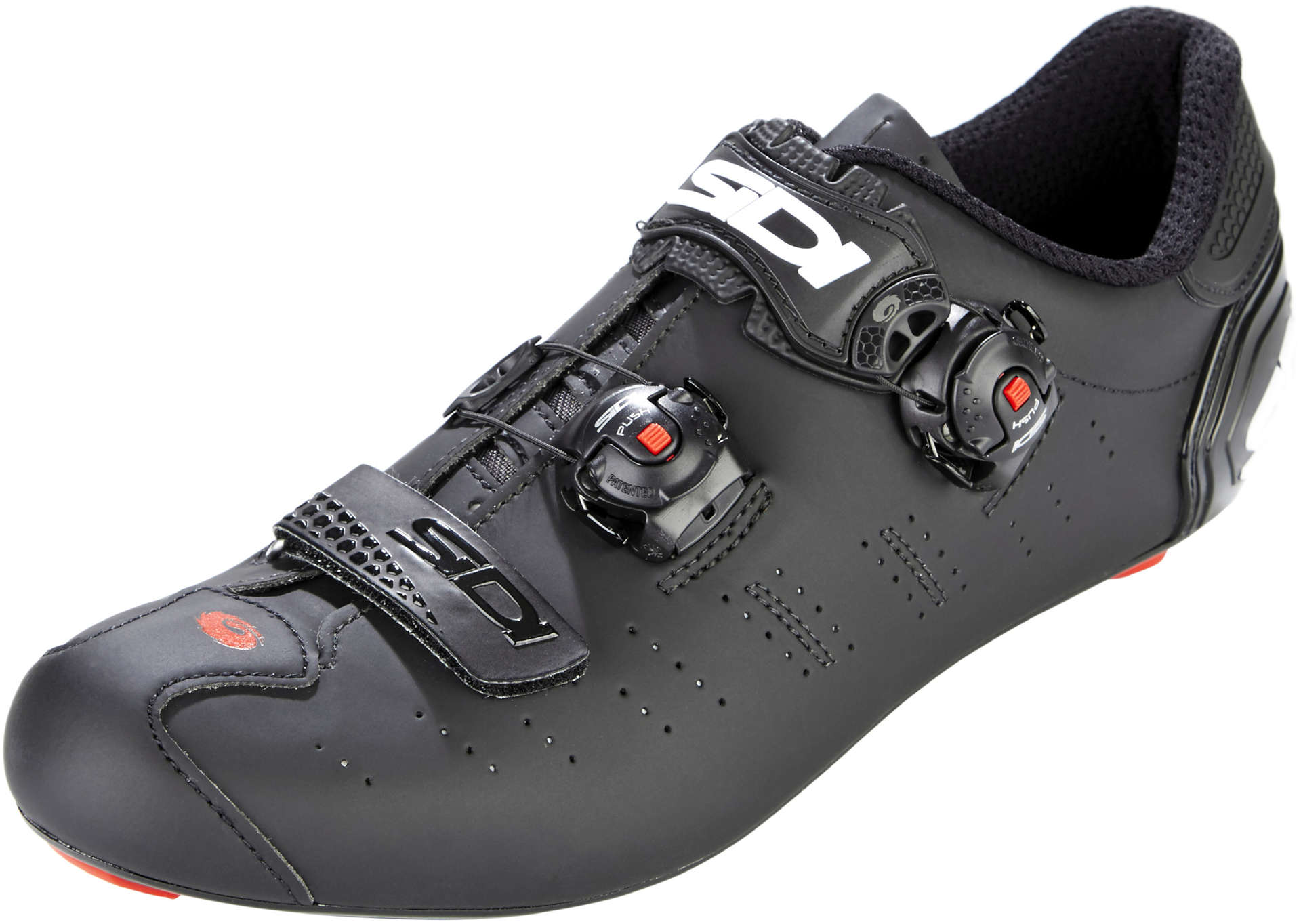 De nieuwe Sidi Ergo 5 Carbon maakt gebruik van een combinatie van een klittenbandsluiting op de voorvoet en het Tecno 3 sluitsysteem. Op die manier is een comfortabele pasvorm gegarandeerd. Het Soft Instep 3-systeem verdeelt de druk gelijkmatig over het gebogen gedeelte, Het systeem is aan beide kanten verstelbaar voor een perfecte middenpositie. De Carbon composite zool is stijf waardoor alle geleverde kracht wordt omgezet in voorwaardse snelheid. De verstevigde Sidi hielpad geeft stijfheid en comfort aan je hak en achterzijde van je voet. Op die manier kun jij optimaal presteren én er gesoigneerd uitzien op de fiets!