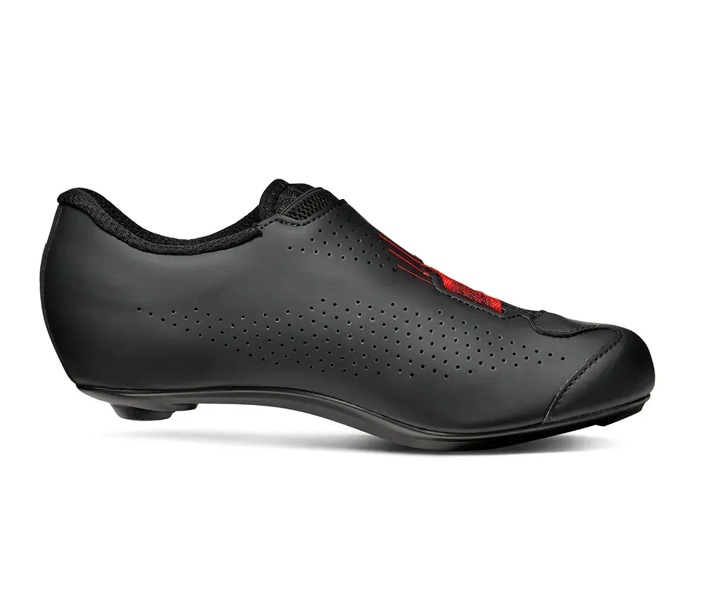 Wanneer je op zoek bent naar een schoen die comfort combineert met stijfheid en een laag gewicht, dan is de Sidi Prima wat voor jou! De Aerolite zool is aerodynamisch geoptimaliseerd en geeft de schoen veel stijfheid. Het composiet materiaal bestaat uit een combinatie van nylon en carbon, voor de perfecte combinatie van comfort en stijfheid. De anti-slip hielpad is te vervangen. De buitenkant van de schoen is gemaakt van Politex, overlappende lagen van gebreide stof, vilt en PVC waardoor het een zeer duurzame werking heeft. Het biedt weerstand tegen scheuren, sneden, uitrekken en kleurvervaging. De schoen zit als gegoten door het Tecno 3 systeem, het robuuste en betrouwbare sluitsysteem van Sidi dat met een draaiknop aan te passen is. De vervangbare kabel zorgt voor een goed pasvorm rond je voet, gemakkelijk aan te passen met één handbeweging. Je voet blijft goed in de schoen, mede door de hiel cup van Sidi, die anatomisch gevormd is en ook zorgt voor extra krachtoverdracht. De firmor sluiting op de schoen zorgt voor maximale laterale ondersteuning om het draagcomfort extra te verhogen.