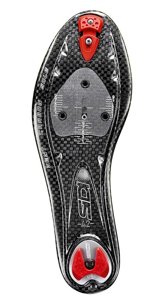 Vent carbonzoolHandgemaakte carbonzool met geïntegreerde ventilatiekanalen voor extra comfort bij warm weer. De lucht stroomt via de afsluitbare ventilatieopening achter het teenplaatje door twee luchtkanalen in de zool naar kleine gaatjes onder de voorvoet. Bij gebruik tijdens een triatlon fungeren de ventilatiekanalen als waterafvoer wat de voetcomfort enorm verhoogt. Het speciale patroon van de carbonvezels biedt maximale stijfheid met beperkte flexibiliteit bij de tenen. Deze flexibiliteit ontlast de peesplaat en verbetert de doorbloeding.