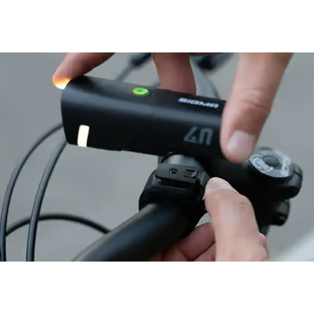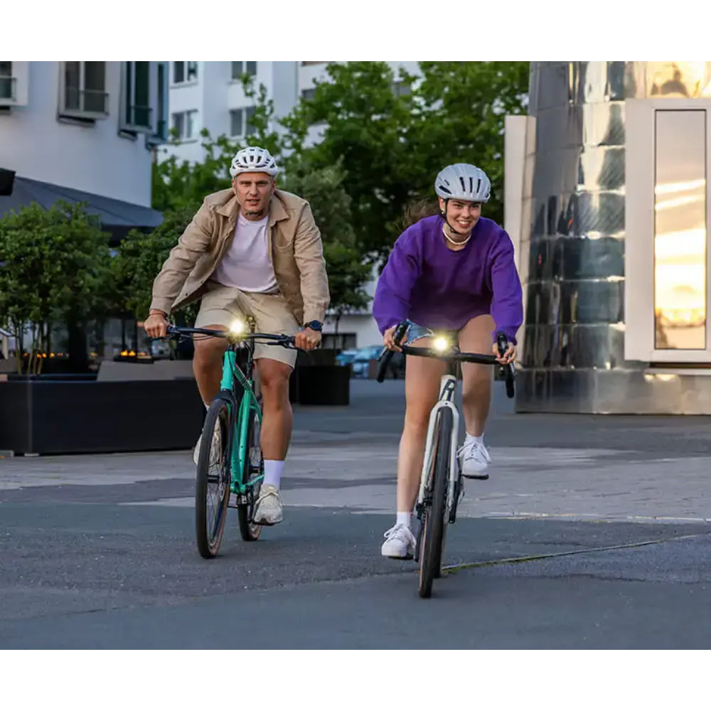 De Auro 40 Koplamp van Sigma is je dagelijkse metgezel in het stadsverkeer. Met een verbeterd lichtpatroon, een lichtbereik van 50 meter en een batterijduur tot 9 uur zorgt deze StVZO-koplamp voor meer veiligheid en zichtbaarheid. Nieuw is de USB-C-aansluiting, waarmee de lamp nu nog sneller en gemakkelijker kan worden opgeladen. De Auro 40 wordt zonder gereedschap op het stuur gemonteerd en is kinderlijk eenvoudig te bedienen.