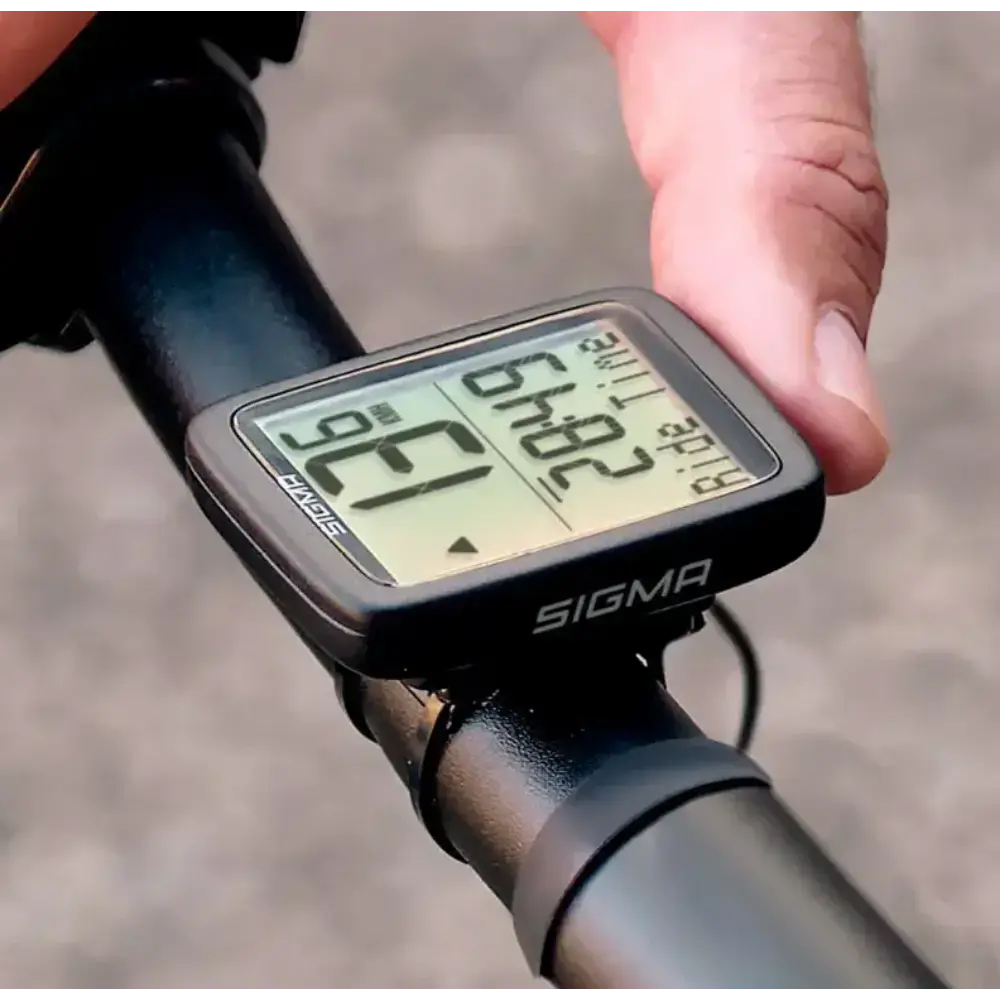 Deze compacte fietscomputer van SIGMA toont acht belangrijke functies die fietsers willen weten. Je hebt inzicht in de snelheid, gemiddelde snelheid, verhouding gemiddelde snelheid t.o.v. de huidige snelheid, afstand, totale afstand, ritduur, totale ritduur en tijd. Daarmee is deze fietscomputer met name geschikt voor forenzen, recreanten of kinderen en jeugd. De BC 8.0 WR is intuïtief, compact en uiterst gebruiksvriendelijk. De directe kabelverbinding met de sensor zorgt voor stabiele en nauwkeurige metingen. Een pijltje in het display geeft aan of jouw gemiddelde snelheid op dat moment oploopt of afneemt. De CR 2032 knoopbatterij gaat tot maar liefst 2 jaar mee en het heldere scherm is duidelijk af te lezen en op te delen in 2 velden. Met een grote knop aan de voorzijde scrol je eenvoudig door de schermen tijdens het fietsen. De meest voorkomende wielmaten staan voorgeprogrammeerd in het toestel waardoor het instellen van jouw wielmaat een fluitje van een cent is. Samengevat is dit een betrouwbare SIGMA original voor dagelijks gebruik!