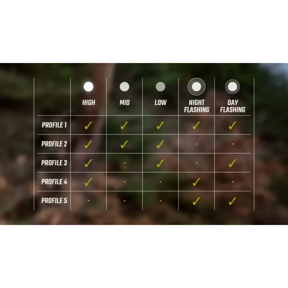 - Donkere omgeving: gebruik in echte donkere omgeving, zoals in bosrijk gebied. Geschikt voor MTB’ers en gravelrijders.
