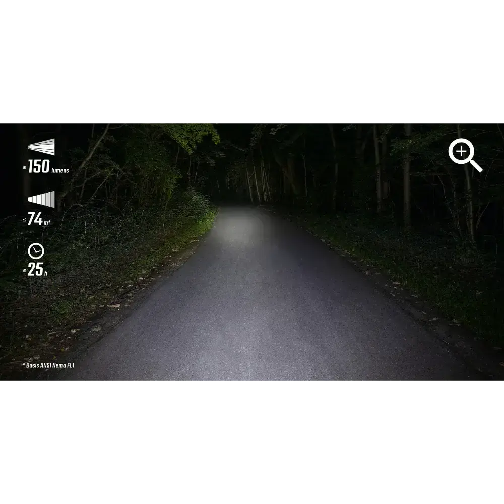 Krachtige lichtbundel van 74 meter met maximaal 150 lumen