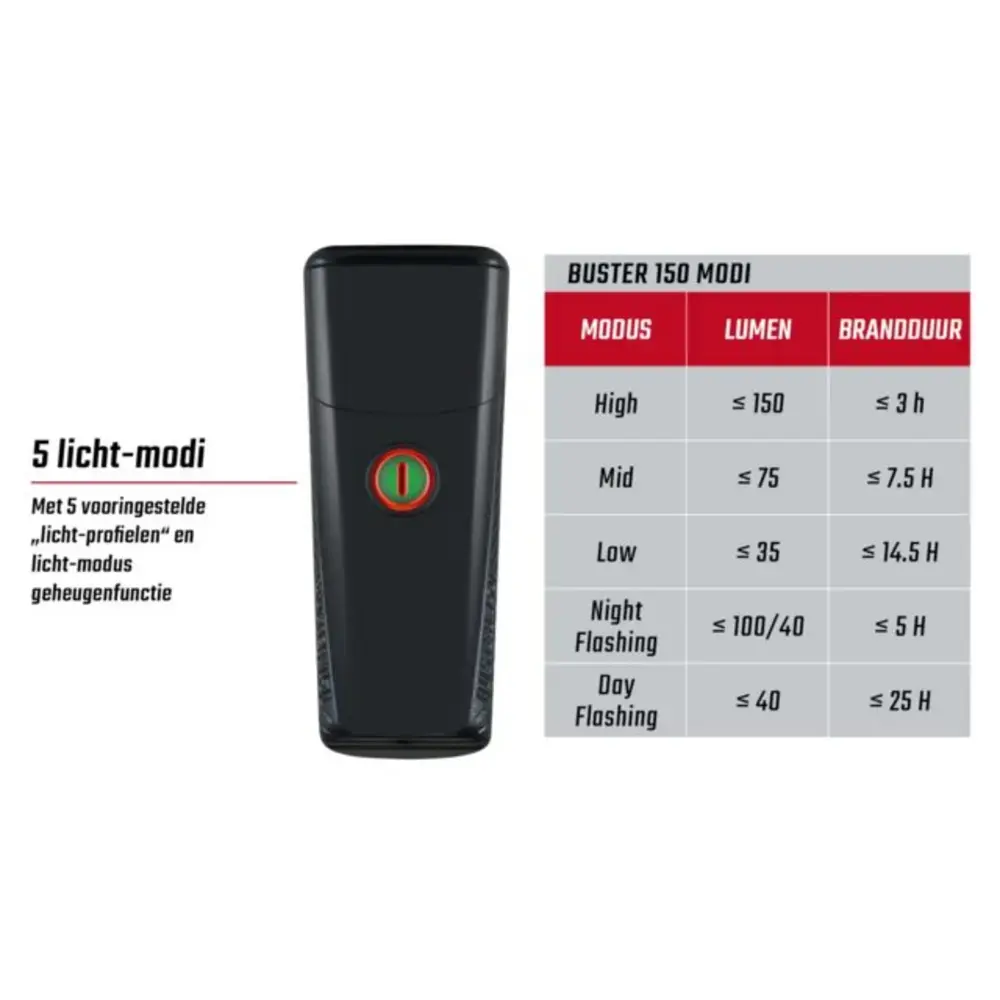 Overige specificaties Sigma Sport Buster 150 met Siliconen Mount en Nugget Verlichtingsset