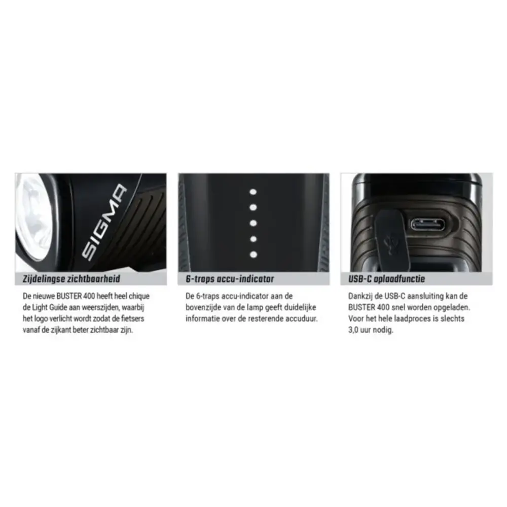 Overige specificaties Sigma Sport Buster 400 Koplamp