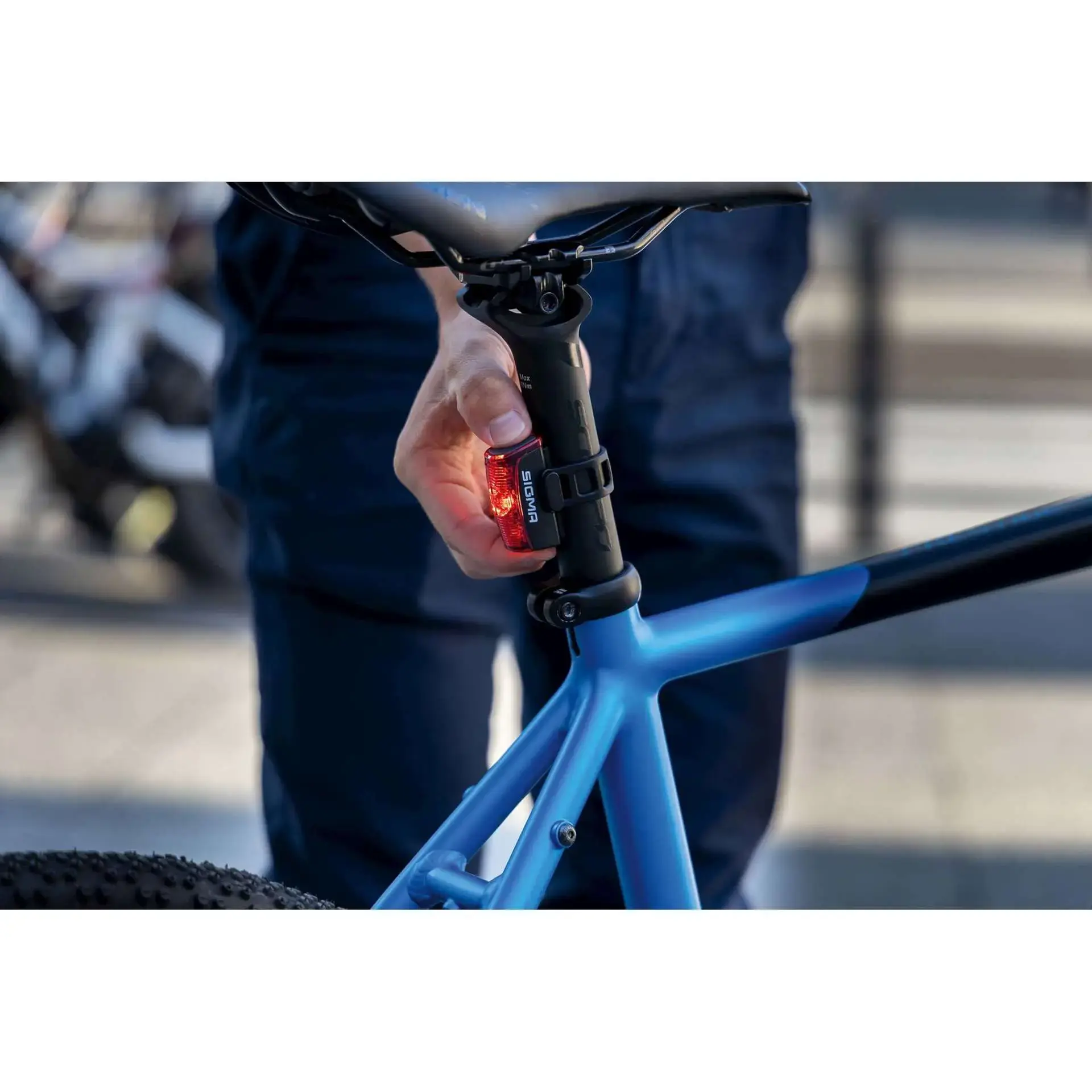 Het Infinity achterlicht van Sigma is het sportief ontworpen achterlicht, geschikt voor al jouw sportieve fietsen. Of je nou op de MTB, racefiets of gravelbike op pad gaat in het donker, dit Infinity achterlicht is jouw stralende metgezel. Het achterlicht is gemakkelijk, zonder gereedschap, parallel aan de zadelbuis te monteren. Dit LED achterlicht is in 2 uur op te laden door de micro-USB laadfunctie en heeft een brandtijd tot wel 16 uur. Ritten tijdens grauwe, vochtige ochtenden zijn geen probleem, doordat het achterlicht spatwaterdicht is gemaakt.