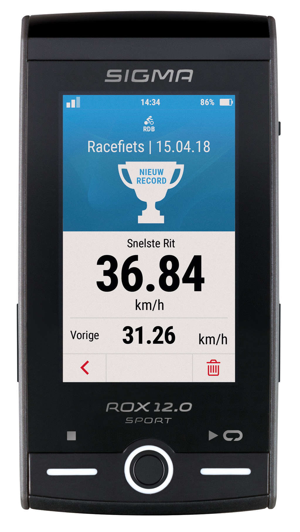 De Sigma Sport ROX 12.0 Sport is dé fietsnavigatie voor wielrenners die zowel uitgebreide navigatiemogelijkheden als uitgebreide prestatieanalyse voorop stellen. De Sigma ROX 12.0 Sport beschikt over een buitengewoon sterke hardware en is super krachtig. Grote knoppen en symbolen op het touchdisplay voeren je intuïtief door het menu. Net als bij de smartphone kom je via de Home-knop altijd weer terug in het startmenu. Met andere knoppen aan de onderkant en zijkant van het display is de bediening ook met handschoenen aan probleemloos mogelijk. Een WiFi-interface, gedetailleerde kaarten met snelle routing en talrijke trainingsfuncties maken de ROX 12.0 tot de ideale trainings- en tochtenmetgezel.