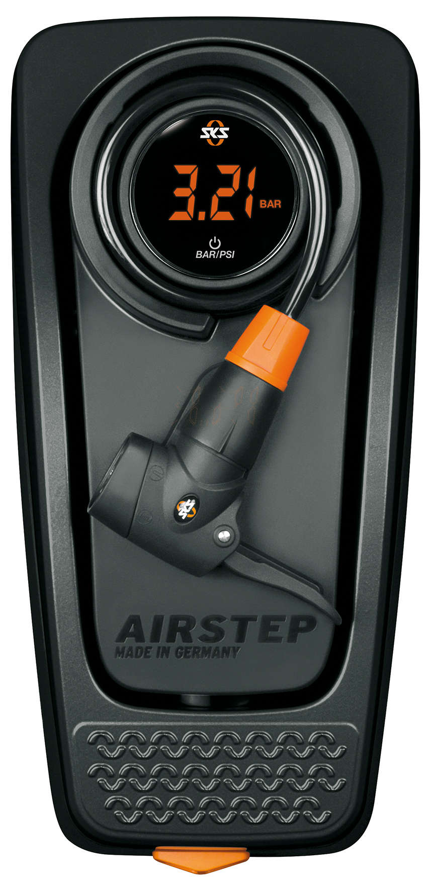 De SKS Airstep Digi Vloerpomp is een update van de Airstep Vloerpomp met hoogwaardige, nauwkeurige digitale nanometer. De superieure sensor-technologie heeft een afwijktolerantie van 1,5% en garandeert een hoge meetnauwkeurigheid. Zo heb je altijd een optimale instelling van de bandendruk. Het strakke design van de Airstep Digi Vloerpomp maakt dat je nooit meer een andere wil. Op het zwarte led-display lees je de bandendruk in het fel oranje schrift perfect af. Het aluminium pedaal is gepoedercoated en krasbestendig. De maximale output van 7 bar maakt de vloerpomp vooral geschikt voor stadsfietsen, cyclocrossers en mountainbikes. Ook voor tubeless rijders op de racefiets is dit een prima pomp!