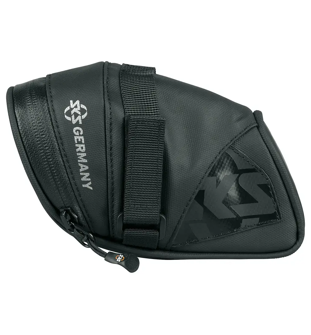 De SKS Explorer Straps zadeltas is robuust en slijtvast. In deze zadeltas kan je je binnenbandje en gereedschap meenemen. Hij is gemaakt van waterafstotend materiaal en is voorzien van gelamineerde ritsen van hoge kwaliteit. De binnen voering is oranje zodat je makkelijk kan zien wat er in het zadeltasje zit.