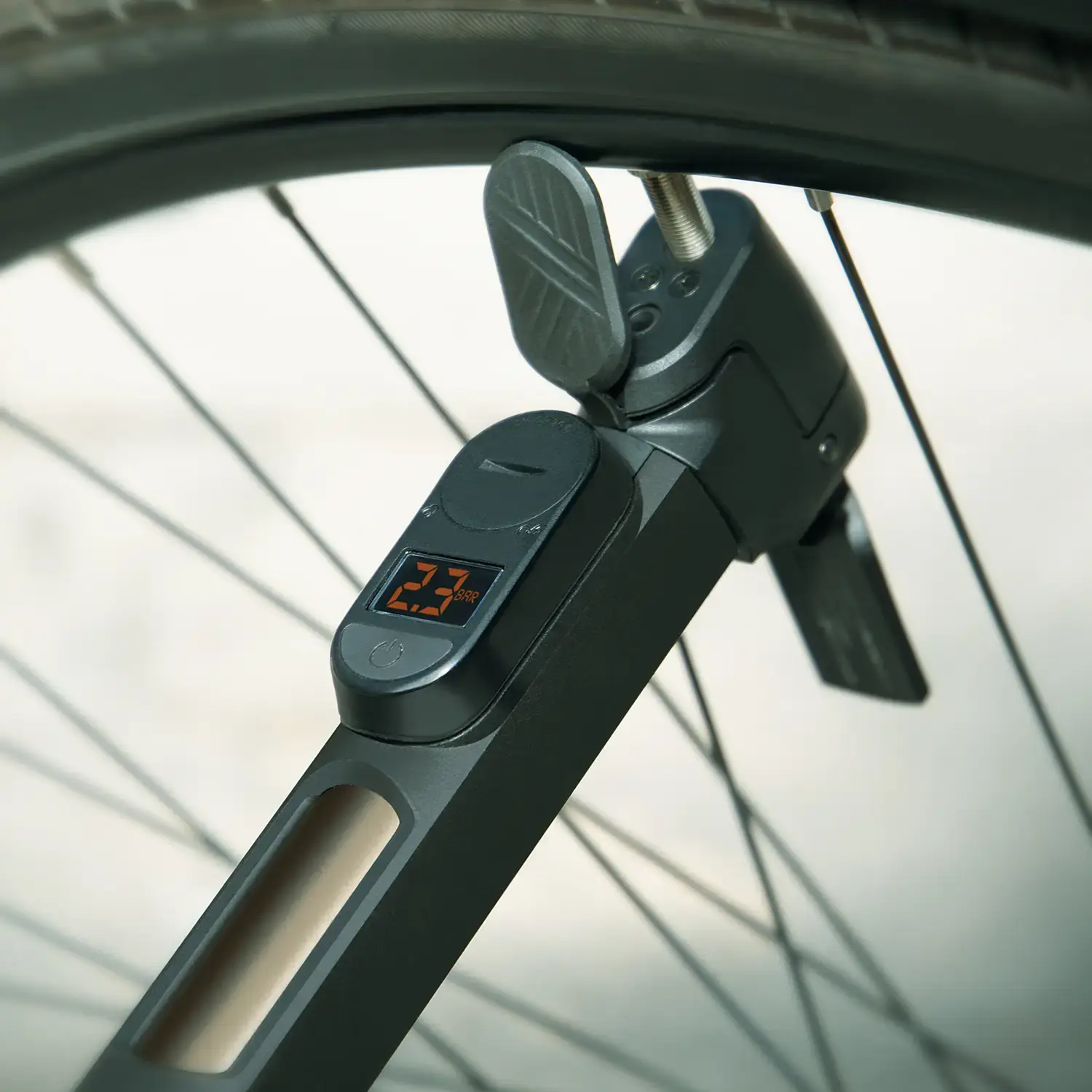 De SKS Injex Control Digi Fietspomp is een hoogwaardige minipomp met een digitale manometer die uiterst nauwkeurige drukmetingen mogelijk maakt. Dankzij de inschakelbare telescoopfunctie kies je tussen meer volume per slag of hogere druk, zodat je efficiënt kunt pompen bij elke situatie. Het ergonomische ontwerp met een 60 graden gekantelde T-greep en een geprofileerde 2-componentengreep zorgt voor comfortabel gebruik, zelfs bij langere pompsessies. De pompkop staat in een hoek van 5 graden en maakt het aansluiten eenvoudiger, terwijl de geïntegreerde klemhendel een betrouwbare verbinding met het ventiel garandeert. Met de MV EASY-kop is de pomp geschikt voor alle gangbare ventielen (AV, SV, DV). Dankzij de aluminium compressiebuis met kunststof mantel is de pomp zowel licht als duurzaam, en met de meegeleverde houder bevestig je hem gemakkelijk aan je frame. Gemaakt in Duitsland voor gegarandeerde kwaliteit.