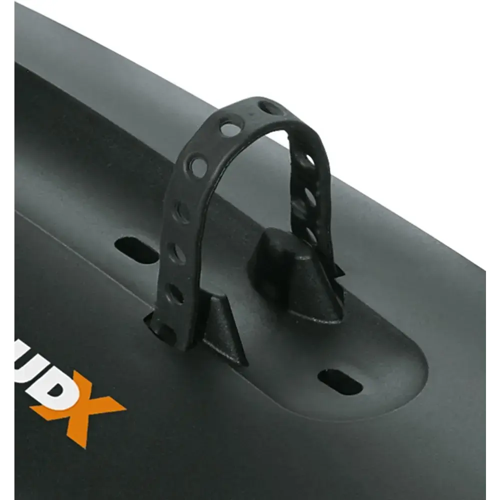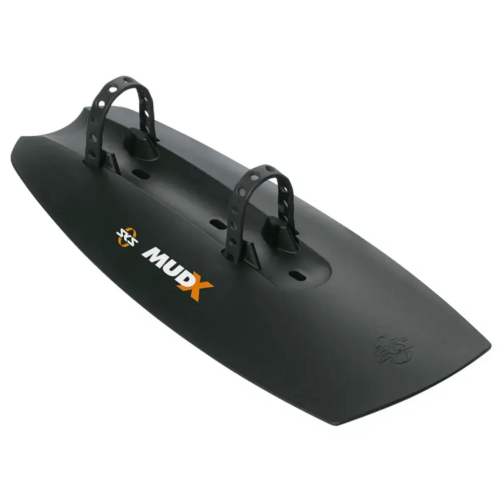 Dit lichtgewicht SKS Mud-X voorspatbord beschermt je kleding tegen spatwater en modder. Het spatbord is gemakkelijk te bevestigen aan de onderbuis van het frame door middel van flexibele, verstelbare rubberen bandjes. Ook worden er rubberen pads meegeleverd om het frame te beschermen tegen krassen.
