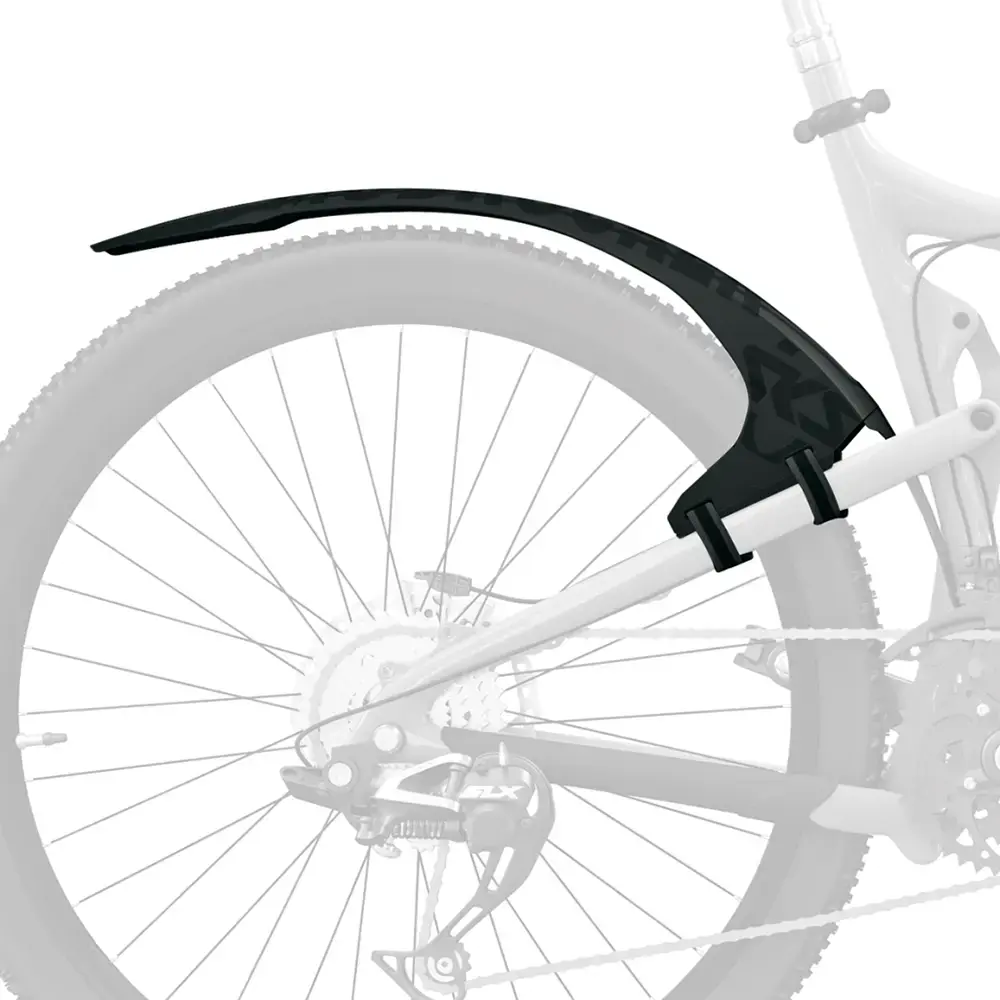 De SKS Mudrocket spatbordenset beschermt je zeer goed tegen opspattend water en modder. De set is zo gemaakt dat deze volledig geïntegreerd is, zodat frame en wiel één geheel vormen. Deze spatbordenset is snel eenvoudig te monteren met rubberen klittenbanden aan de voor en achterzijde. De buisbescherming aan beide zijdes zorgt ervoor dat er minder vuil op de steunen komt. Omdat de spatborden zeer breed zijn, kun je ze gebruiken met wielen tot wel 3.0 inch (76mm) breed.