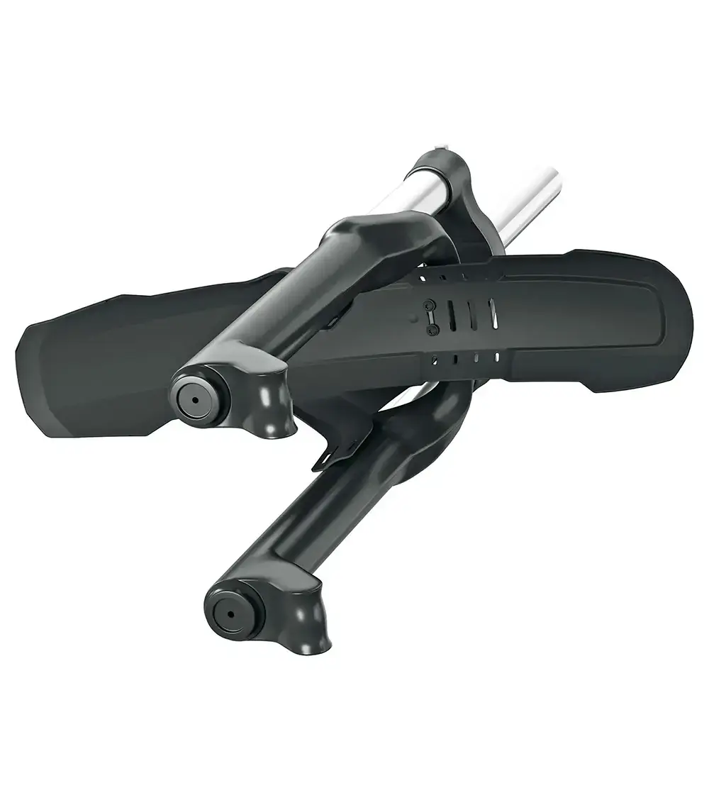 Met het slagvaste en hoogwaardige SKS Mudrocker Voorspatbord wordt je niet afgeleid door modder in je gezicht. Al je aandacht blijft bij je fietstechniek tijdens modderige trails door het bos. De Mudrocker heeft een stijlvol design door de zwarte mat/glanzende kleur. Dit spatbord met lakvriendelijke, met rubber beklede klittenband of kabelbinders kan snel op de vorkbrug worden gemonteerd en net zo snel worden verwijderd. De Mudrocker kan ook met een speciale adapter worden bevestigd als er een schroefdraad op de vorkbrug zit. Door zijn lengte biedt hij optimale bescherming tegen opspattend water. De adapter is ook compatibel met geveerde vorken met twee zijdelingse schroefdraadbussen van de merken Fox, Rockshox vanaf BJ 2021 en Öhlins. Bovendien garandeert de zijdelingse bevestiging aan de dompelbuis met klittenband of kabelbinders een hoge stabiliteit. De buisbescherming aan beide zijden zorgt er ook voor dat er minder vuil op de standbuizen terechtkomt. Afhankelijk van de geometrie van de geveerde voorvork kan deze op maat worden geknipt. Een adapter, klittenbanden en hoogwaardige, slijtvaste TPU-framebeschermingsfolie worden meegeleverd.