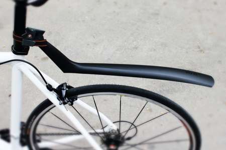 Dankzij de stoffen strips gaat montage en demontage zeer vlot. Blijft ook perfect op zijn plaats zitten al rijdend. Daarenboven is het spatbord ultra licht zonder dat het aan efficiëntie inboet.