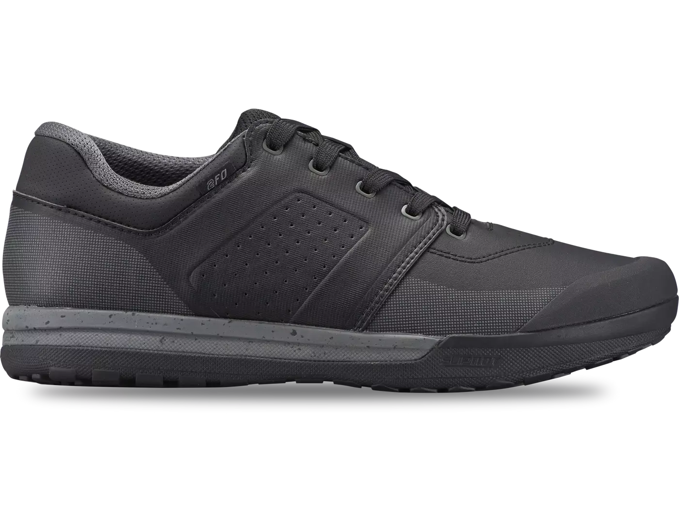 Downhillen met zelfverzekerdheid? Dan heb je deze 2FO DH Clip Mountainbikeschoenen nodig. Specialized heeft de schoenen ontwikkeld in samenwerking met downhill-atleten van het hoogste niveau. De schoenen geven dan ook precies de juiste hoeveelheid grip, bescherming en (niet onbelangrijk) stijl. Die grip is te danken aan het SlipNot FG rubber die de beste grip geeft in zijn klasse, wanneer het terrein ruig wordt. De bovenzijde is van een versterkt synthetisch leer, om je voet op zijn plek te houden. Er is een XPEL coating op die stof aangebracht om waterabsorptie te voorkomen.