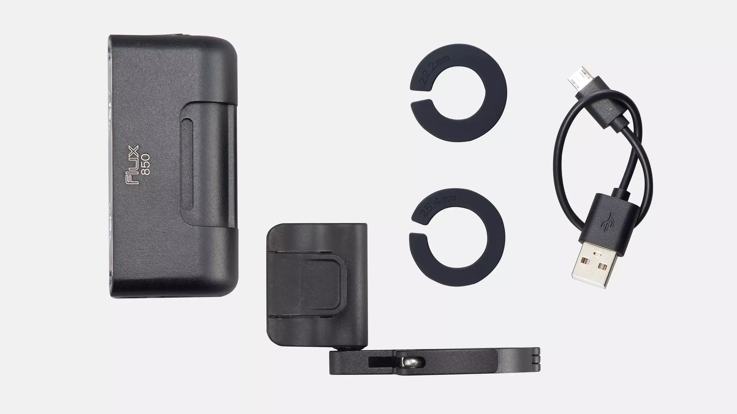 De Flux 850 Koplamp van Specialized is een topkwaliteit lamp met hoge lichtopbrengst en veel montage-mogelijkheden. De lamp heeft een Mode Shift gebruikersinterface waarbij je drie niet-knipperstanden hebt met precies de juiste mix van lumens en batterijduur voor de alle rijomstandigheden. Houd de knop ingedrukt om naar de tweede modus te gaan, waar de knipperstanden te vinden zijn. Handig voor ritten overdag of lange (bikepacking)trips. De batterij gaat dan namelijk tot 20 uur mee. Ook kan hij prima tegen een dagje in de regen dankzij de IPX7 waterbestendigheid. Met de Quick-release bar mount kun je de lamp op 22.2, 25.4, en 31.8mm buizden monteren. De lamp kan boven of onder het stuur komen te hangen en zit zo nooit in de weg van kabels of je fietscomputer. Daarnaast wordt er een helmbevestiging meegeleverd.