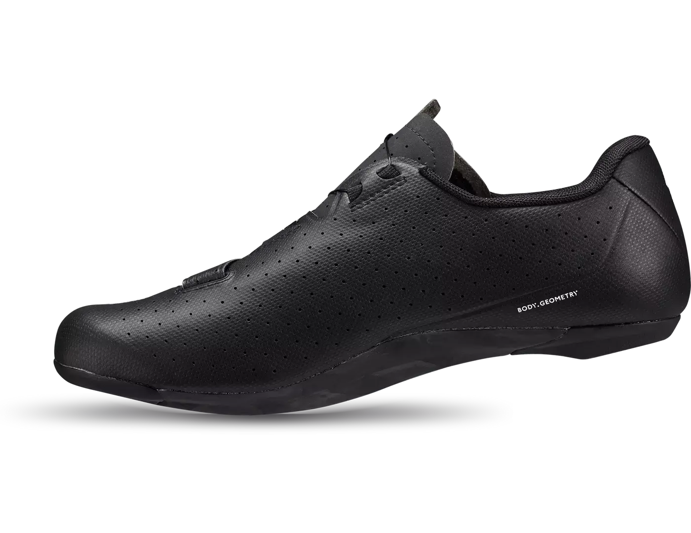 De Specialized Torch 2.0 Road Schoenen draaien de ideale combi tussen comfort en prestaties. En dan zien ze er ook nog eens heel erg goed uit! Prestatiegerichte fietsschoenen kunnen soms te stijf en oncomfortabel aanvoelen. Dat weten de Torch 2.0 schoenen te voorkomen door gebruik te maken van een 100% mesh en TPU constructie. Daardoor valt de schoen als een sok om je voeten heen en bieden ze meer ruimte voor de tenen. De schoenen zijn voorzien van BOA sluiting waarmee je de pasvorm eenvoudig afstelt. Daarnaast kijkt Specialized naar lichaamsgeometrie om een optimale uitlijning van de voet, knie en enkel te krijgen. De stijve FACT Carbon composiet zool zorgt voor een efficiënte, maar comfortabele overbrenging van kracht op de pedalen.