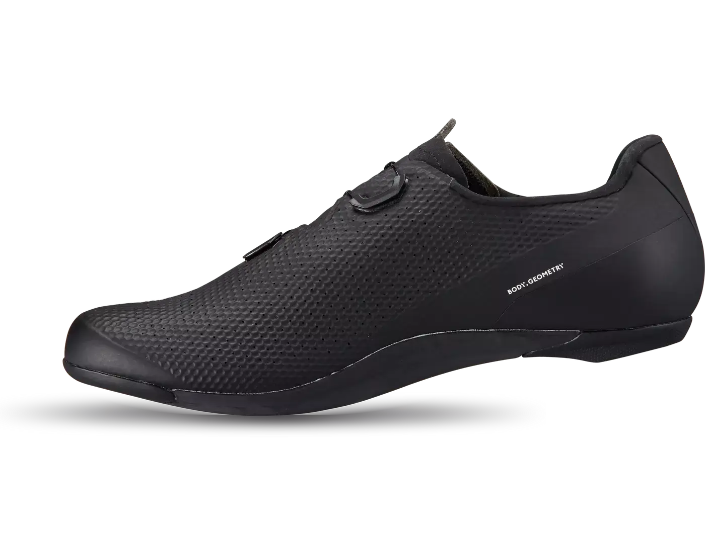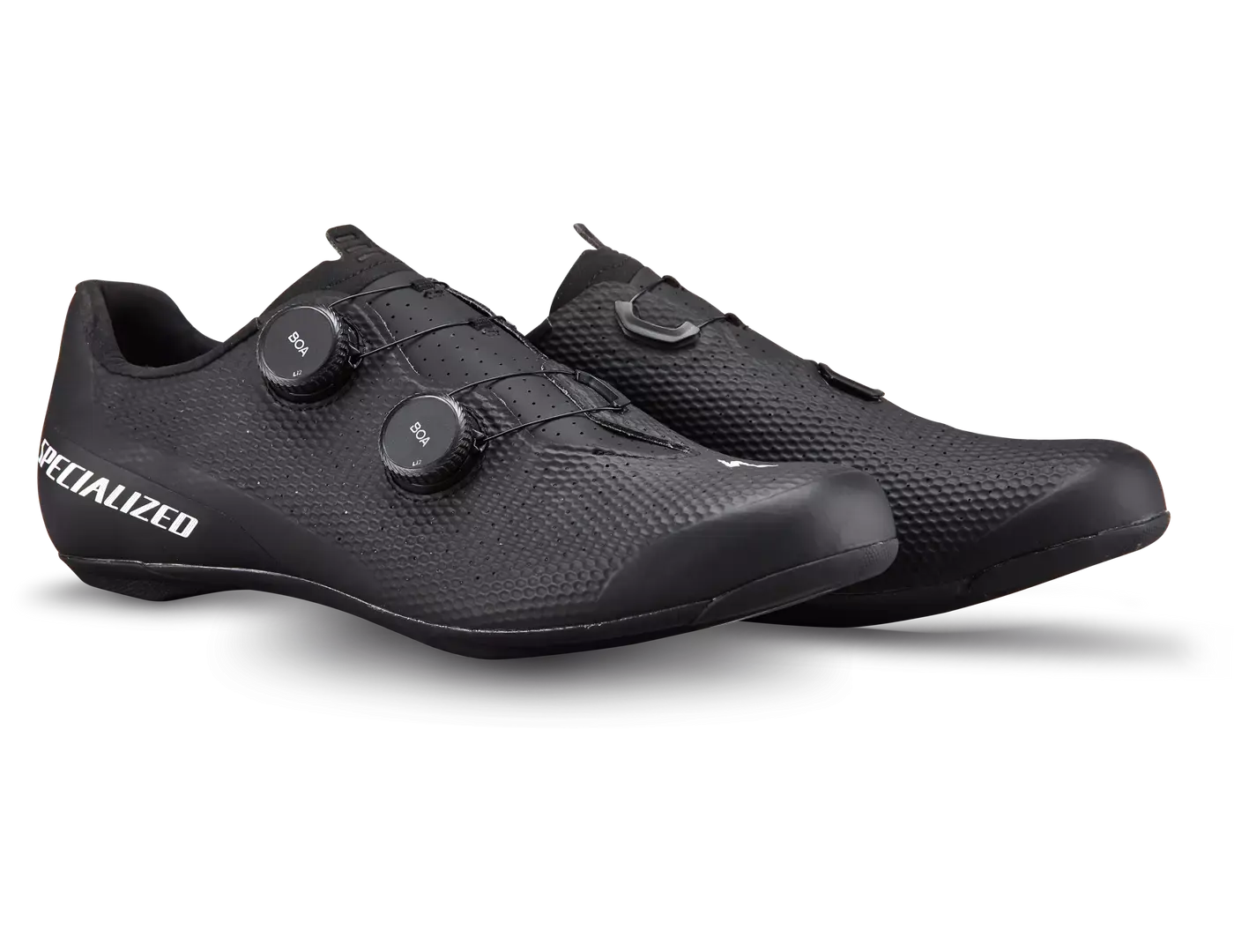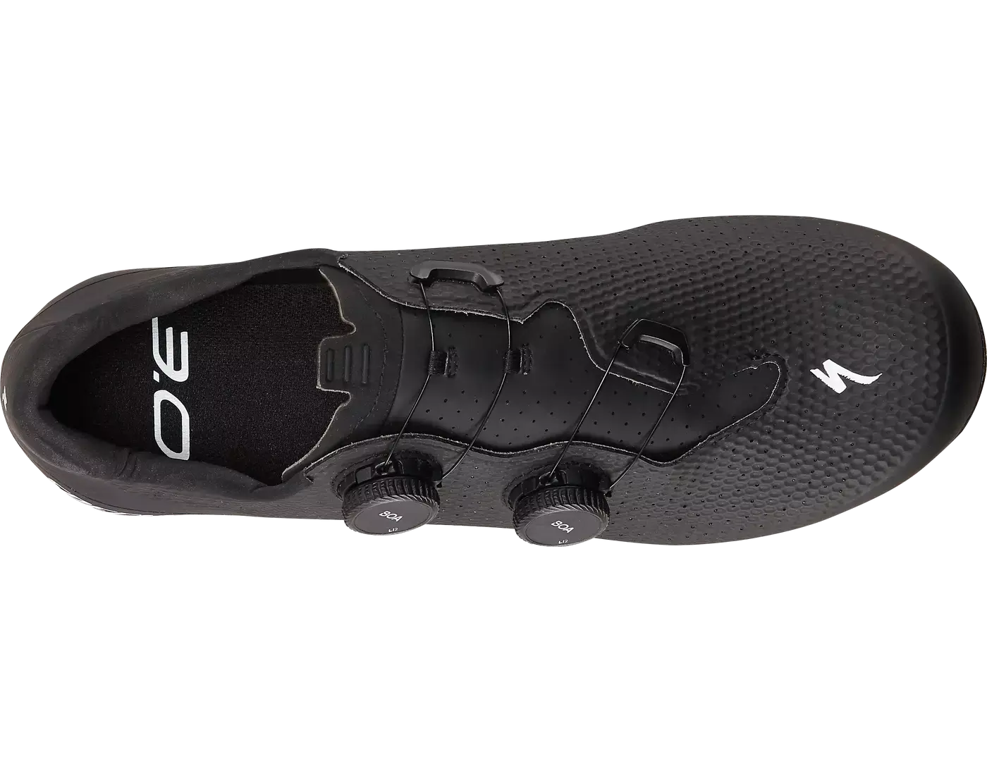 Dat weten de Torch 3.0 schoenen te voorkomen door gebruik te maken van een 100% mesh en TPU constructie. Daardoor valt de schoen als een sok om je voeten heen en bieden ze meer ruimte voor de tenen. Tevens hebben deze schoenen een regular fit wat ze voor vrijwel iedere voet geschikt maakt. De schoenen zijn voorzien van 2 BOA Li2 sluitingen waarmee je de pasvorm zeer eenvoudig en toch precies afstelt. Daarnaast kijkt Specialized naar lichaamsgeometrie om een optimale uitlijning van de voet, knie en enkel te krijgen. De stijve full Carbon zool zorgt voor een zeer efficiënte, maar comfortabele overbrenging van kracht op de pedalen.