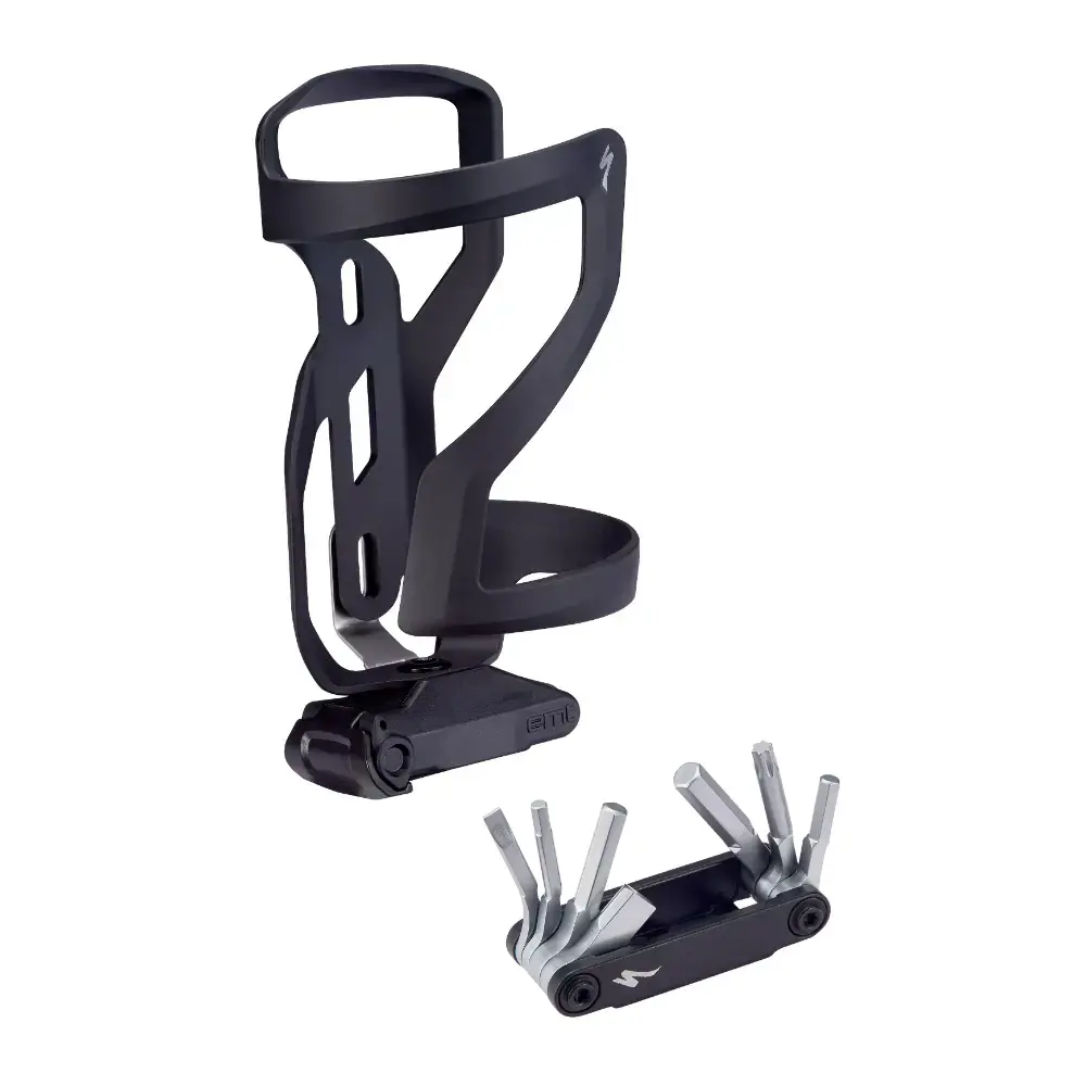 EMT Cage Mount ToolMet de meegeleverde EMT Cage Mount Tool heb je altijd de belangrijkste gereedschappen binnen handbereik zonder dat je een extra tasje hoeft mee te nemen. De multitool is uitgerust met 3, 4, 5, 6 en 8mm inbussleutels, een T25 Torx en een platte schroevendraaier. Doordat de tool direct onder de bidonhouder is gemonteerd, blijft het zwaartepunt van je fiets laag en is je gereedschap optimaal beschermd tegen vuil en vocht.
