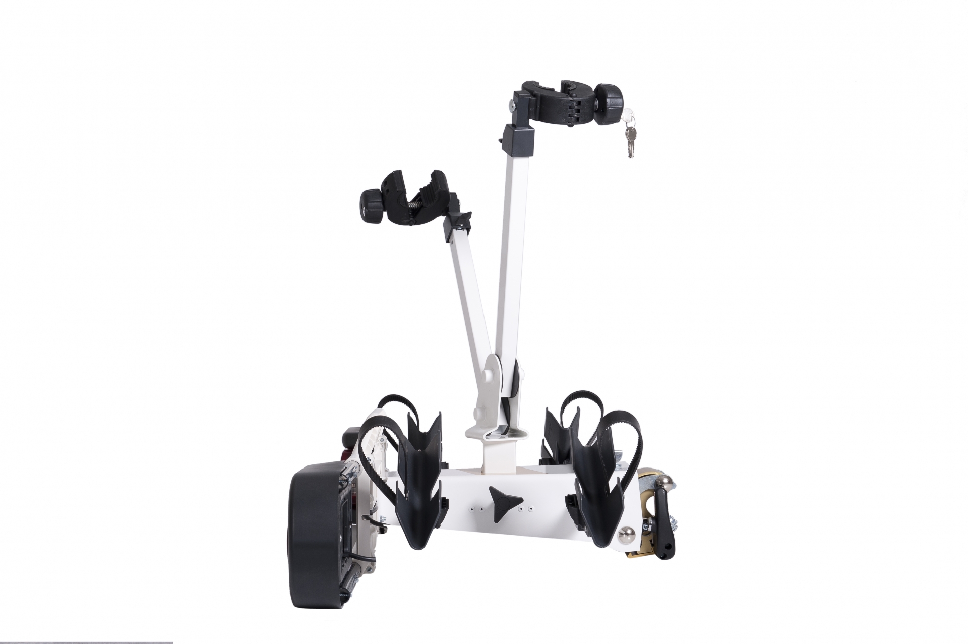 Sloten op het koppelingsmechanisme en op de armen waarmee je de fiets vast maakt