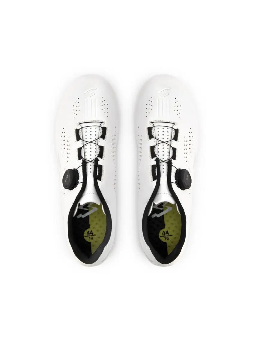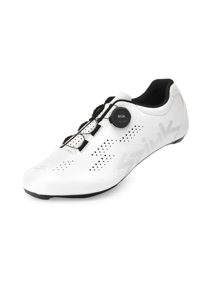 De Spiuk Ruta is de perfecte wielrenschoen voor wie net begint in de opwindende wereld van het fietsen. Elegantie en veelzijdigheid komen samen in dit comfortabele, lichtgewicht ontwerp. De geperforeerde bovenkant en het Drilling Shell System (DSS) zorgen voor een uitstekend ademend vermogen, terwijl het BOA® Fit System een snelle, nauwkeurige en moeiteloze pasvorm garandeert. De Advanced Composite SPV-zool biedt een uitstekende balans tussen stijfheid en comfort, ideaal voor trainingen en ritten op een gemiddeld niveau.