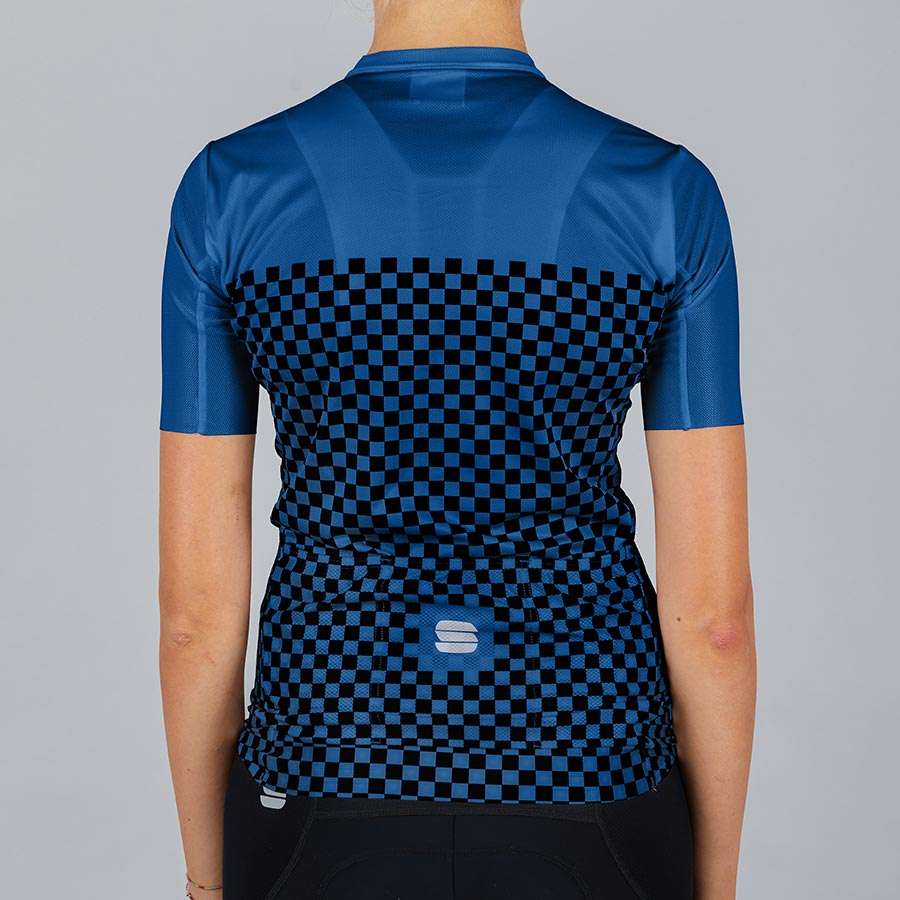 Sportful Checkmate Fietsshirt Korte Mouwen Blauw/Zwart Dames