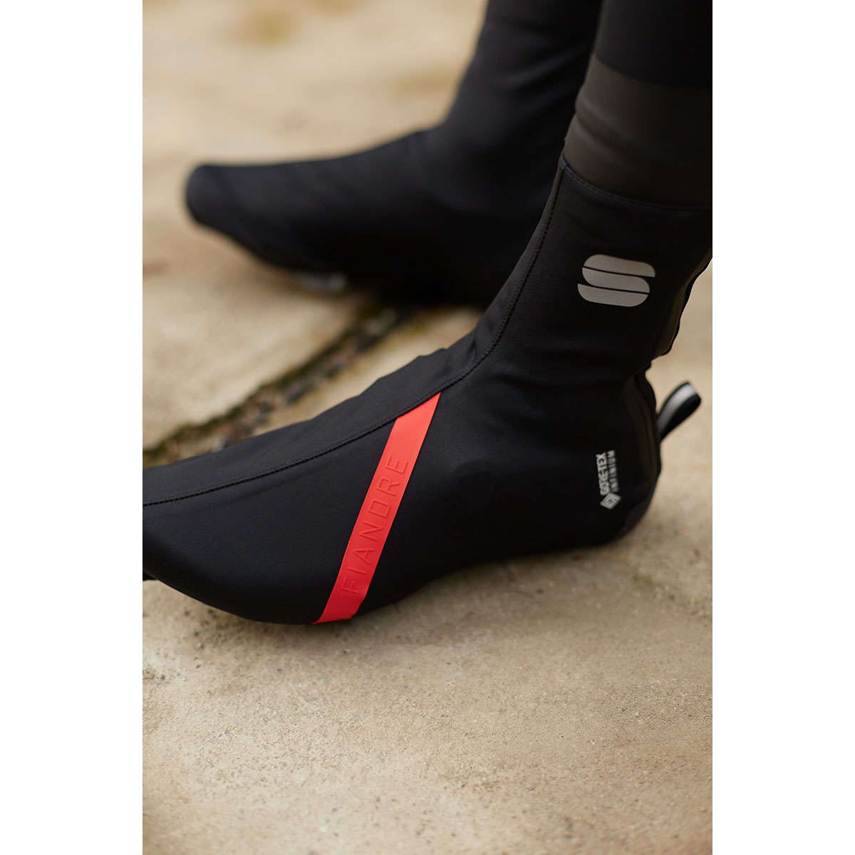 Deze Fiandre overschoenen van Sportful zijn gemaakt om door te kunnen fietsen in onstuimig najaarsweer. De overschoenen zijn gemaakt van Gore-Tex Infinium materiaal dat maximaal ademend en winddicht is. Opspattend water en lichte regen druppelt van de overschoenen af. De elastische sluiting voorkomt binnendringen van water aan de bovenzijde. De zool is verstevigd, zodat je met ee gerust hart ook af en toe van de fiets kunt, zonder de overschoenen na één keer lopen weg te moeten gooien. De stevige geweven treklus geeft de duurzaamheid van deze Fiandre overschoen extra nadruk en maakt aantrekken makkelijker. Rondom is de overschoen reflecterend, zodat je in het donker beter opvalt