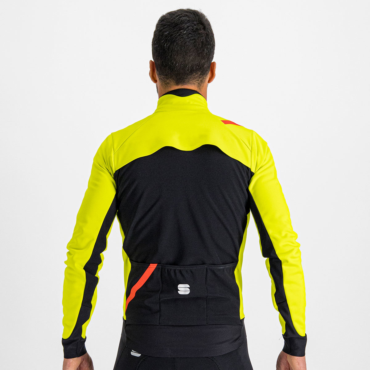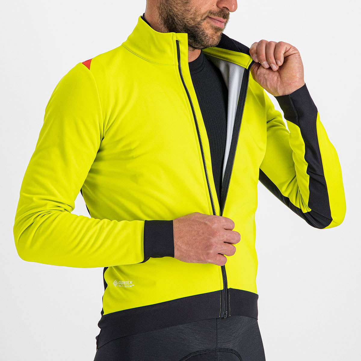 Het Fiandre Medium fietsjack van Sportful is ontwikkeld voor de renners die ook willen blijven rijden en presteren wanneer de temperatuur enorm daalt. De winddichte voorkant van het goed ademende en waterafstotende Gore-Tex Infinium materiaal beschermt je bij guur weer. De rest van het shirt heeft een No Rain behandeling gehad, die tevens beschermt tegen lichte regen, maar wind nog wel door laat. Zo geniet je van ventilatie en blijft je lang droog. De kraag is gemaakt van een dubbele stoflaag dat zorgt voor een aangenaam comfort. In de micro-geperforeerde achterzakken neem je makkelijk je accessoires mee.