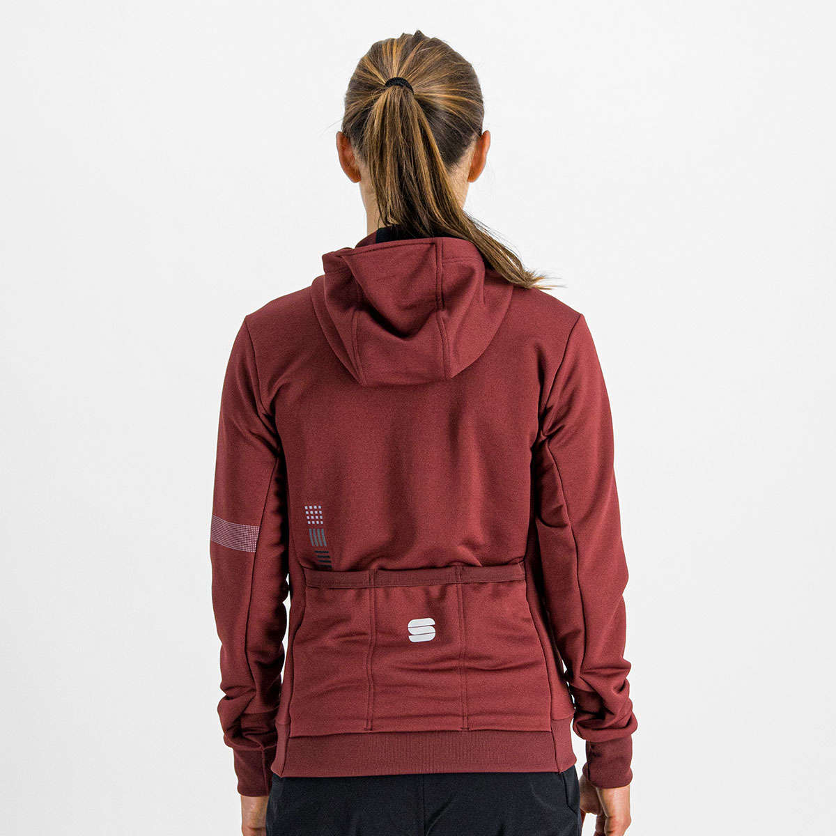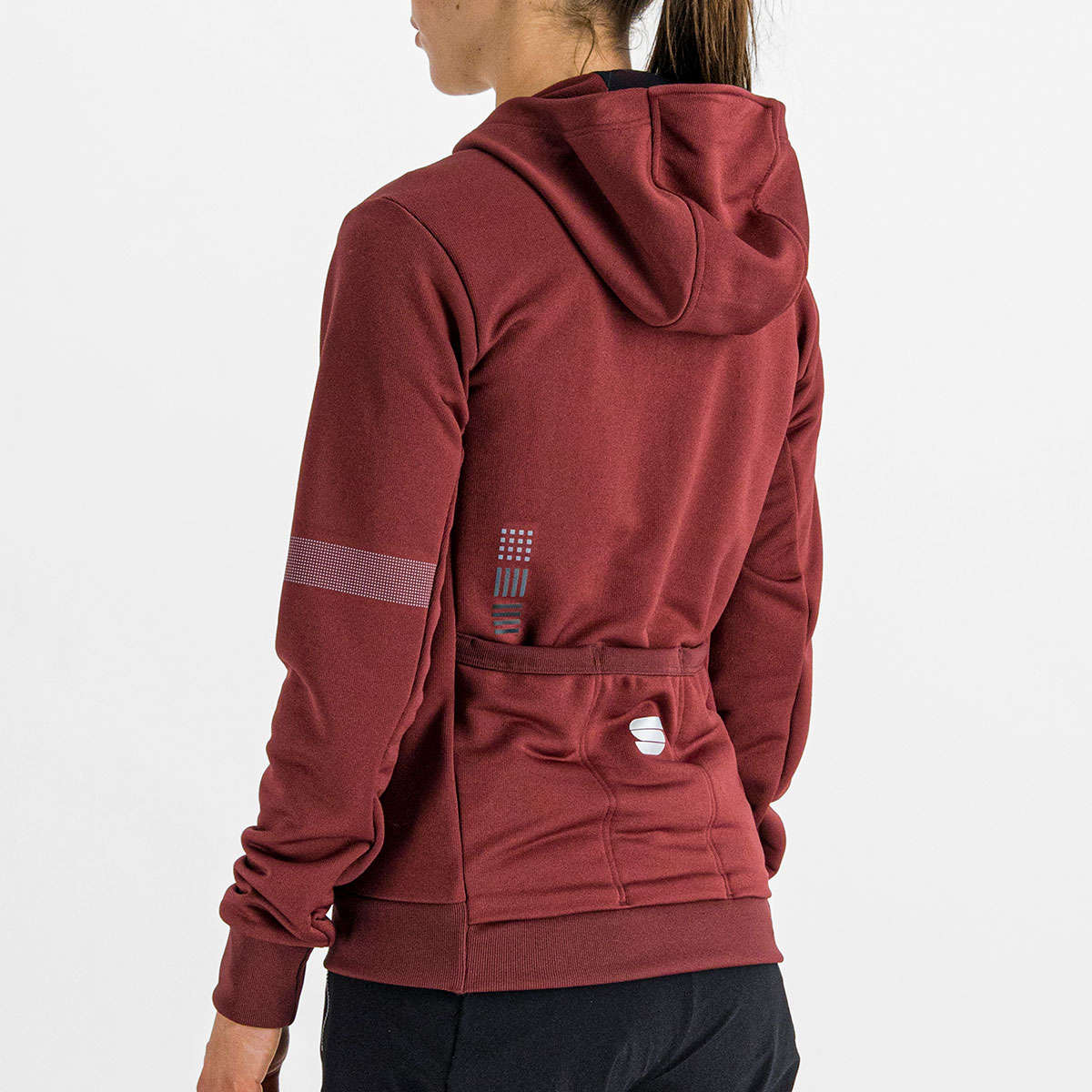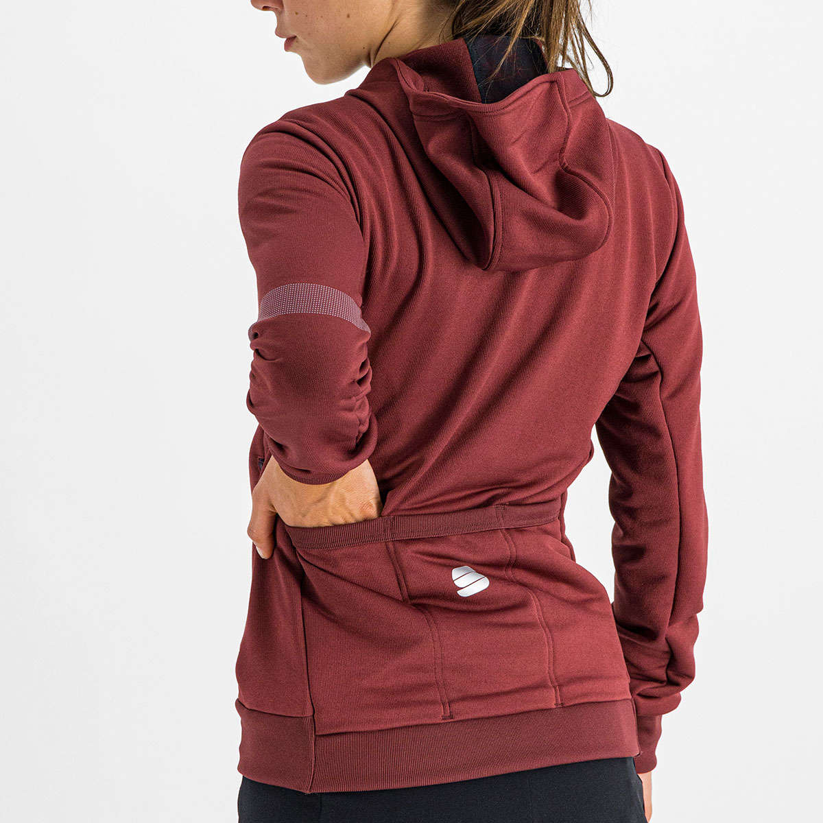 Sportful Giara Hoodie Fietsshirt Lange Mouwen Donkerrood Dames