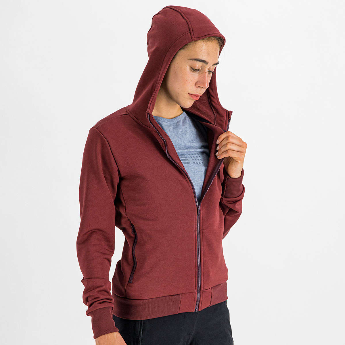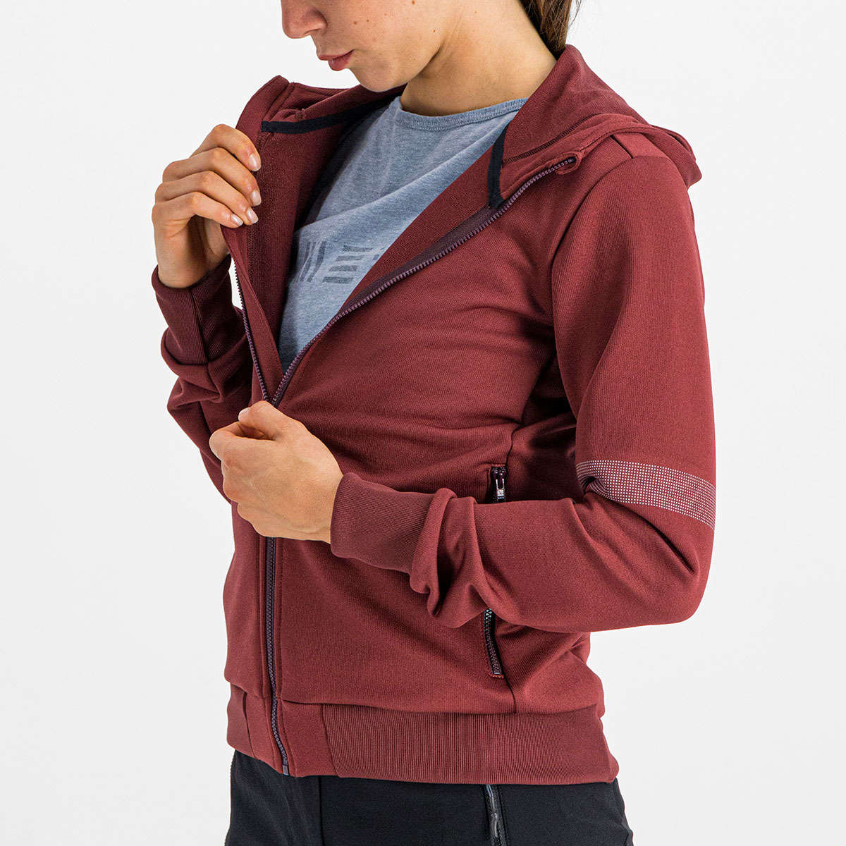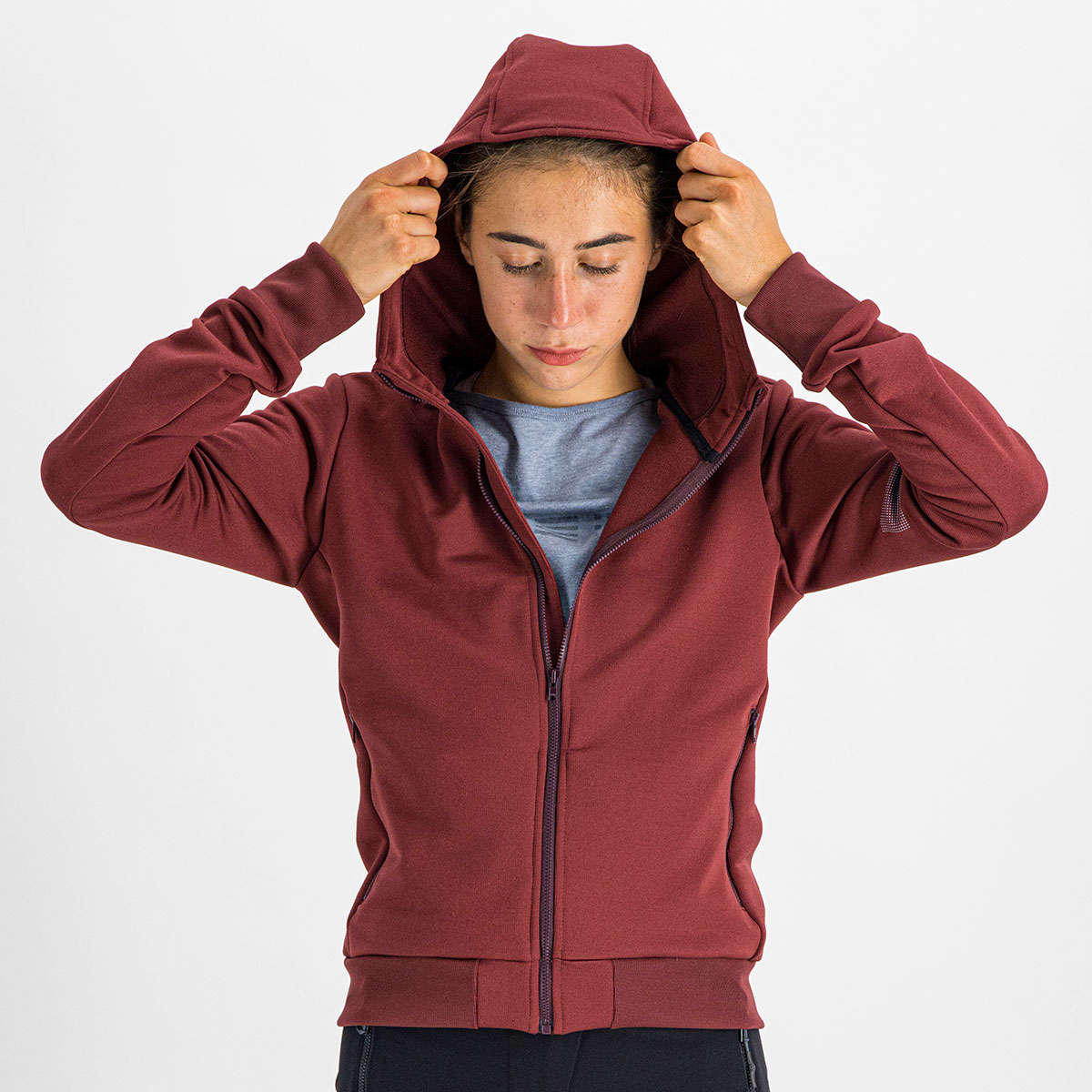 Sportful Giara Hoodie Fietsshirt Lange Mouwen Donkerrood Dames