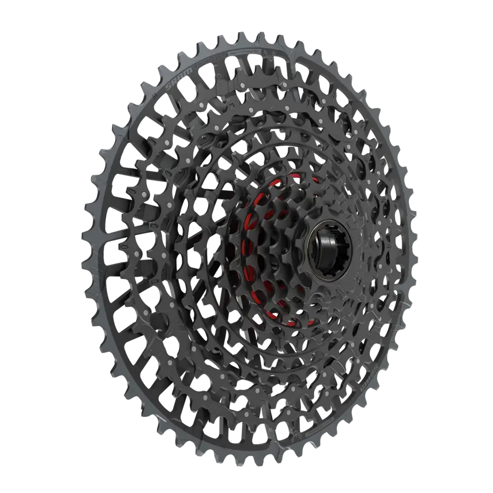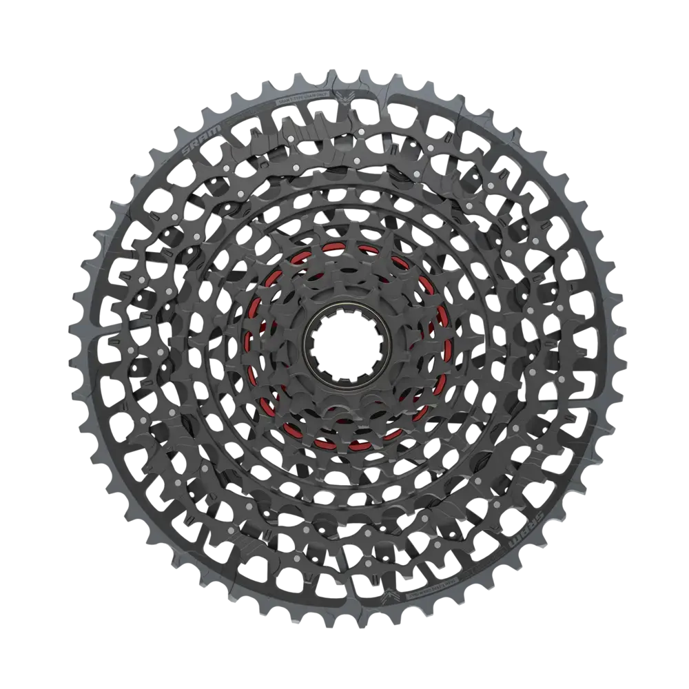 Met de XS1297 Cassette zet SRAM de nieuwe standaard in kwaliteit. De cassette biedt de beste schakelprestaties onder belasting. Sterker nog: hoe harder je trapt, hoe beter hij schakelt. Dat is te danken aan het X-SYNC-ontwerp. Daarmee is de cassette ook goed te gebruiken op e-MTB’s. De cassette is licht van gewicht en extreem slijtvast. De nieuwe generatie heeft een volledig machinaal bewerkte X-Dome-architectuur van gehard staal voor de versnellingen 1 t/m 11 en een ultralichtgewicht, aluminium kransje voor de 12e versnelling.