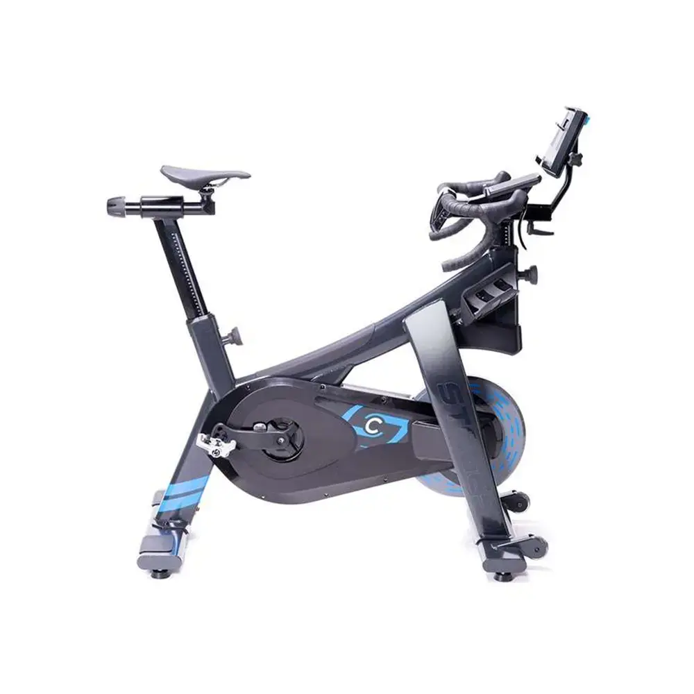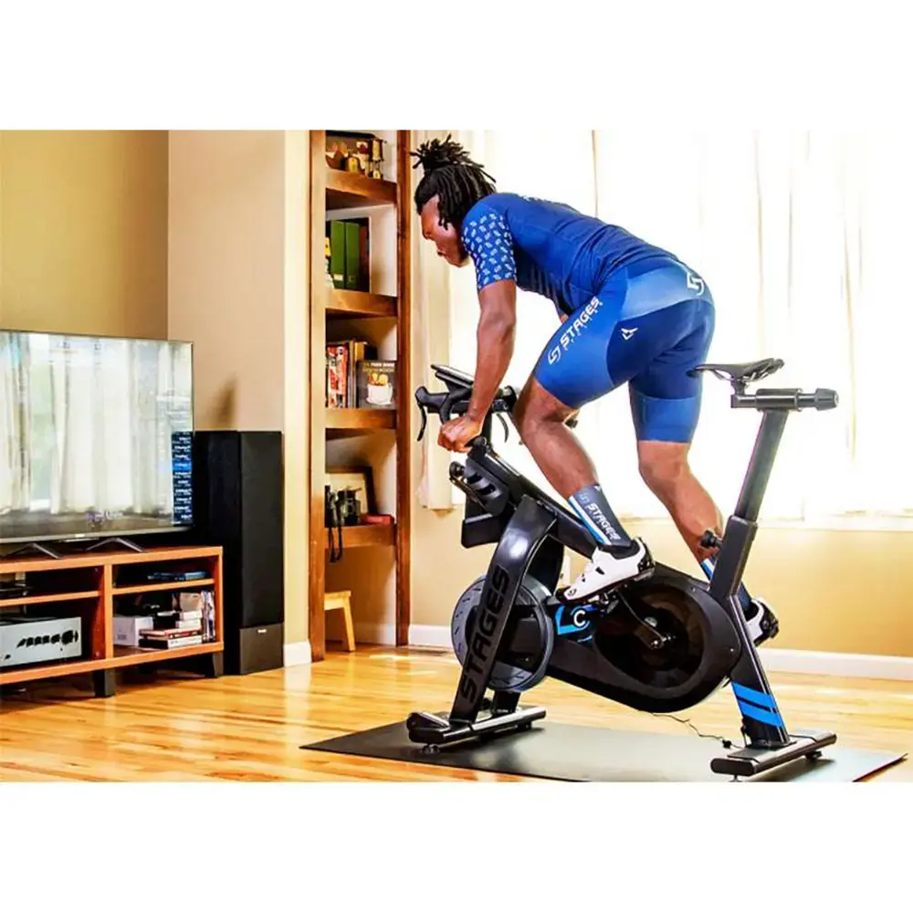 De nieuwe Stages bike is de nieuwe standaard op het gebied van indoor cycling. Deze interactieve fietstrainer beschikt over alles wat je nodig hebt om de Mont Ventoux naar je huiskamer te halen. De fiets is volledig af te stellen naar jouw wensen in zadelhoogte, afstand naar het stuur en de cranklengte. Hierdoor kan je de trainer nog gemakkelijker afstellen dan je eigen fiets. Als je hem eenmaal ingesteld hebt dan is deze altijd klaar om te knallen en kan je dus zo opstappen. Je hoeft dus niet meer eerst je eigen fiets naar binnen te halen om binnen te kunnen fietsen. Ook het verwisselen van cassettes is verleden tijd.