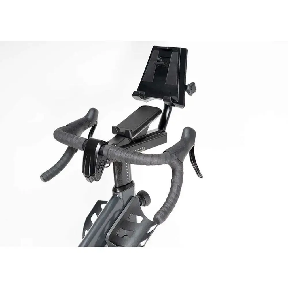 Op de Stage Bike is met vrijwel iedere indoor cycling applicatie te gebruiken. Waaronder uiteraard Zwift, Trainer Road en The Sufferfest. Via ANT+ en Bluetooth connectie kan je contact maken met vrijwel alle apparaten en deze kan je via de twee USB poorten ook nog eens opladen. Ook beschikt de trainer over een handige tablethouder. Gebruik je liever je Garmin of Wahoo fietscomputer? Dat is uiteraard ook mogelijk.