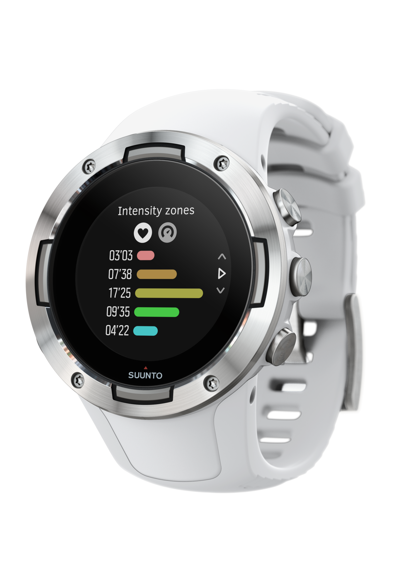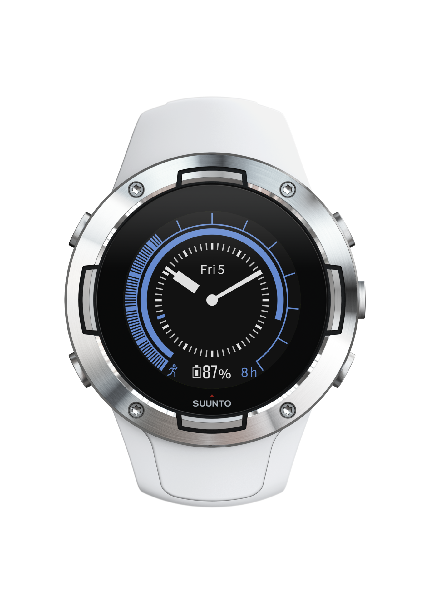 Dit sporthorloge onderscheidt zich van andere horloges van Suunto, doordat de Suunto 5 vrijwel enkel gericht is op sporten en minder op outdoor. Dit uit zich dan ook in het ontbreken van de weermeldingen die de ‘reguliere’ modellen zoals de Suunto 9 wel hebben. Echter zorgt dit ervoor dat dit horloge excelleert in het meten van vrijwel alle waarden die je nodig hebt tijdens het sporten. Er zijn 80 voor ingestelde sportmodi en daarnaast wordt de hartslag via de pols gemeten en is het horloge op vrijwel iedere sensor met Bluetooth te koppelen. Je kunt hem dus zo aan je cadans sensor en vermogensmeter op je fiets koppelen. Daarnaast meet dit horloge stapfrequentie en zelfs je geleverde hardloopvermogen tijdens het hardlopen. Maar ook je slagfrequentie, zwemtijd en zwemafstand in het zwembad. Ook wordt je verbrandde calorieën, gezette stappen, slaaptijd, stress en nog veel meer. De lijst is eigenlijk te lang! Ook is het horloge te koppelen aan trainingapps als Strava, Trainingpeaks en kunnen smart notificaties tijdens het sporten ontvangen worden.