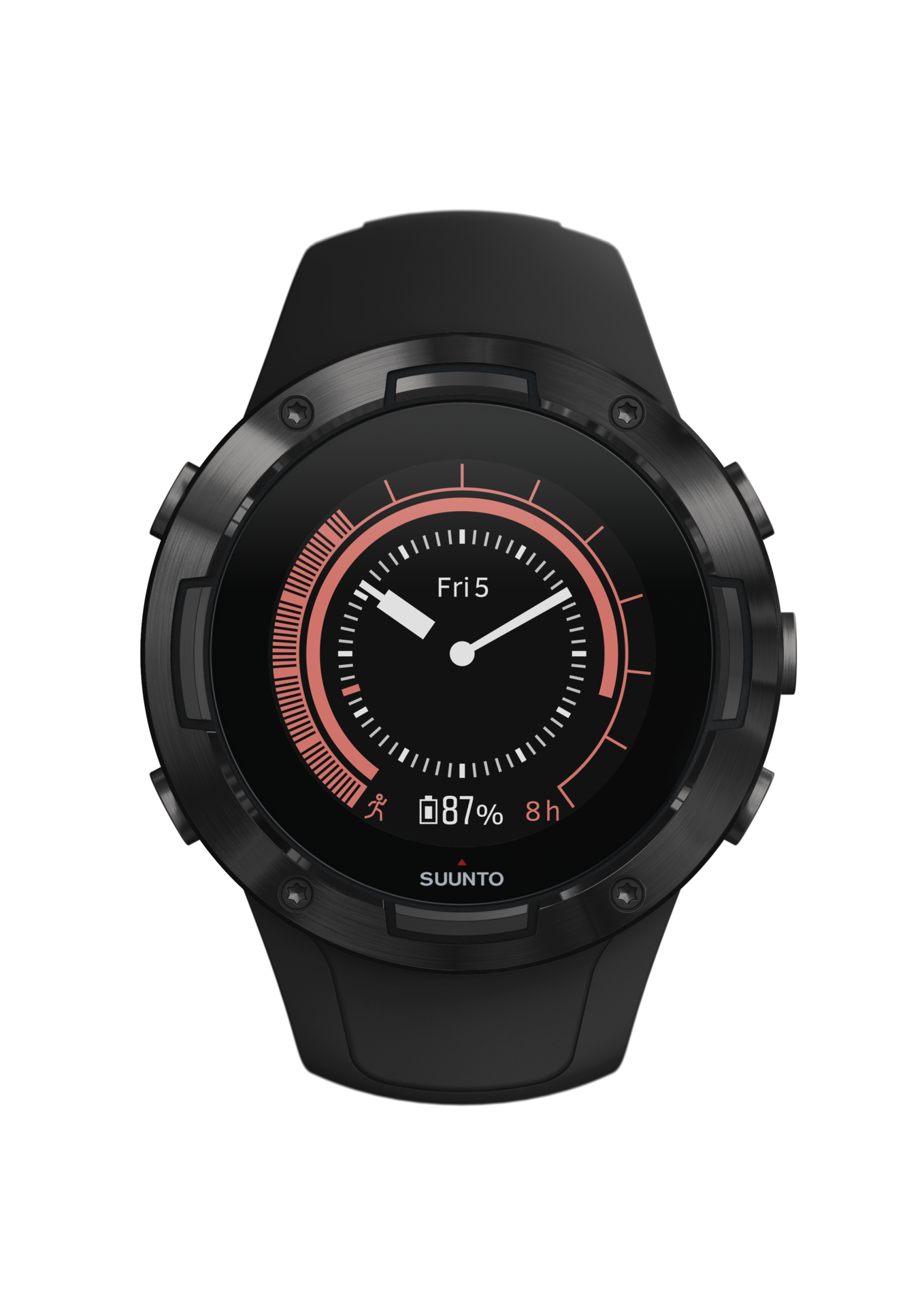 Dit sporthorloge onderscheidt zich van andere horloges van Suunto, doordat de Suunto 5 vrijwel enkel gericht is op sporten en minder op outdoor. Dit uit zich dan ook in het ontbreken van de weermeldingen die de ‘reguliere’ modellen zoals de Suunto 9 wel hebben. Echter zorgt dit ervoor dat dit horloge excelleert in het meten van vrijwel alle waarden die je nodig hebt tijdens het sporten. Er zijn 80 voor ingestelde sportmodi en daarnaast wordt de hartslag via de pols gemeten en is het horloge op vrijwel iedere sensor met Bluetooth te koppelen. Je kunt hem dus zo aan je cadans sensor en vermogensmeter op je fiets koppelen. Daarnaast meet dit horloge stapfrequentie en zelfs je geleverde hardloopvermogen tijdens het hardlopen. Maar ook je slagfrequentie, zwemtijd en zwemafstand in het zwembad. Ook wordt je verbrandde calorieën, gezette stappen, slaaptijd, stress en nog veel meer. De lijst is eigenlijk te lang! Ook is het horloge te koppelen aan trainingapps als Strava, Trainingpeaks en kunnen smart notificaties tijdens het sporten ontvangen worden.